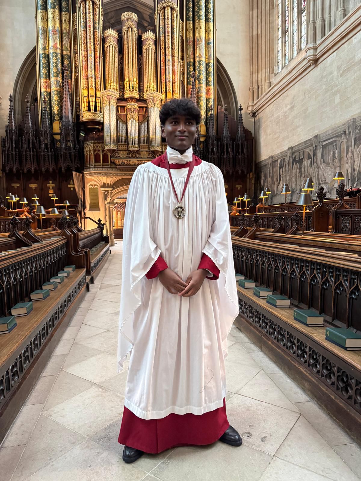 Old Pilgrim Shane, having received a Music Scholarship to Eton and having been Head Chorister at Winchester Cathedral, is now the Keeper of Choir, which is a similar role at Eton College Chapel. The role involves leading the choir in many ways, including bible readings at important services, having an influence over the choice of music in Chapel each week and leading the boys on the Japan Tour in 2026. Shane has received a special medal to wear during services along with garments that have been passed down through many generations.