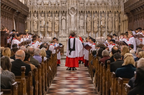 The Quiristers and choirs during the Amicabilis Concordia service at Winchester College Chapel.