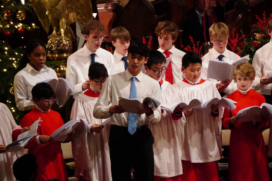 The choir’s program blended timeless carols with contemporary seasonal works, showcasing its versatility and artistry. From the opening strains of Once in Royal David’s City, led by Will Wang’s striking solo, to the triumphant finale of Hark! The Herald Angels Sing, the performance radiated precision, warmth, and joy. The Quiristers’ crystalline treble lines soared above the rich tones of the back row singers, while the audience joined in for beloved congregational carols.