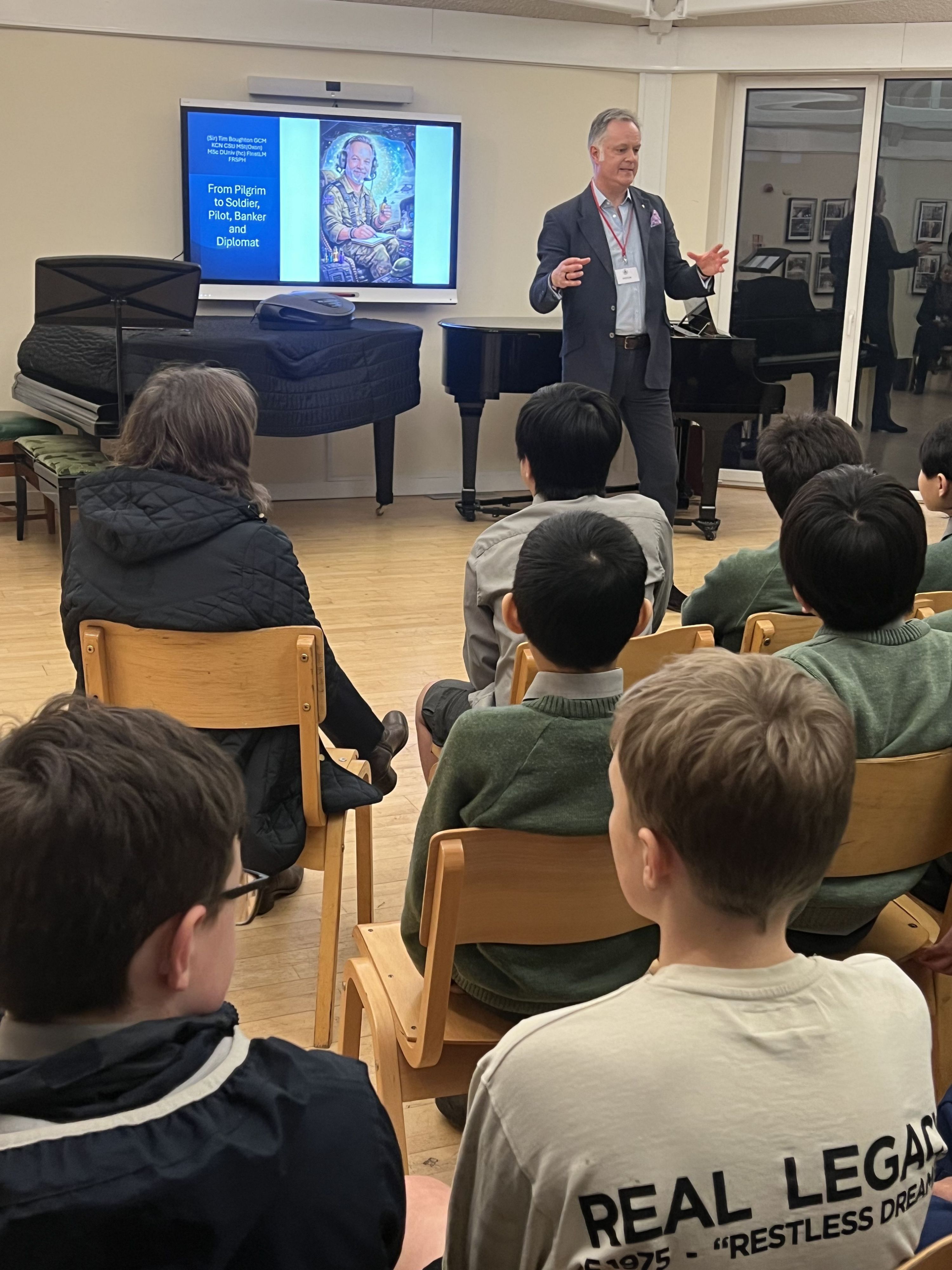 Sir Tom Boughton (an Old Pilgrim and Quirister) spoke to the boys during our Twilight Talk about his own remarkable journey through school and life. His talk entitled ‘From Pilgrim to Soldier, Pilot, Banker and Diplomat’, covered a lot of his experiences since leaving Pilgrims’ 44 years ago. He spoke to the boys about resilience and understanding that life will not always run smoothly, and that it is in our ability to look forward that we are often able to achieve our goals.