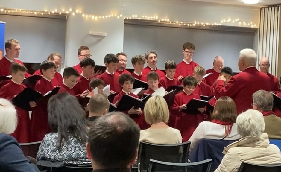 The Choristers and the Lay Clerks held a Carol Concert at the Winchester Racquet Club to raise funds for a tour to Fleury in 2026. The event was open to the public and the elderly guests appreciated the easy access by car and barrier free.