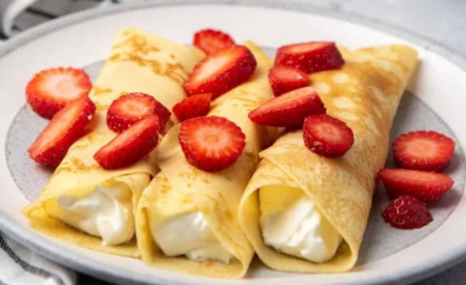 A thin, delicate pancake that can be filled with sweet toppings like sugar, fruit, or chocolate.
