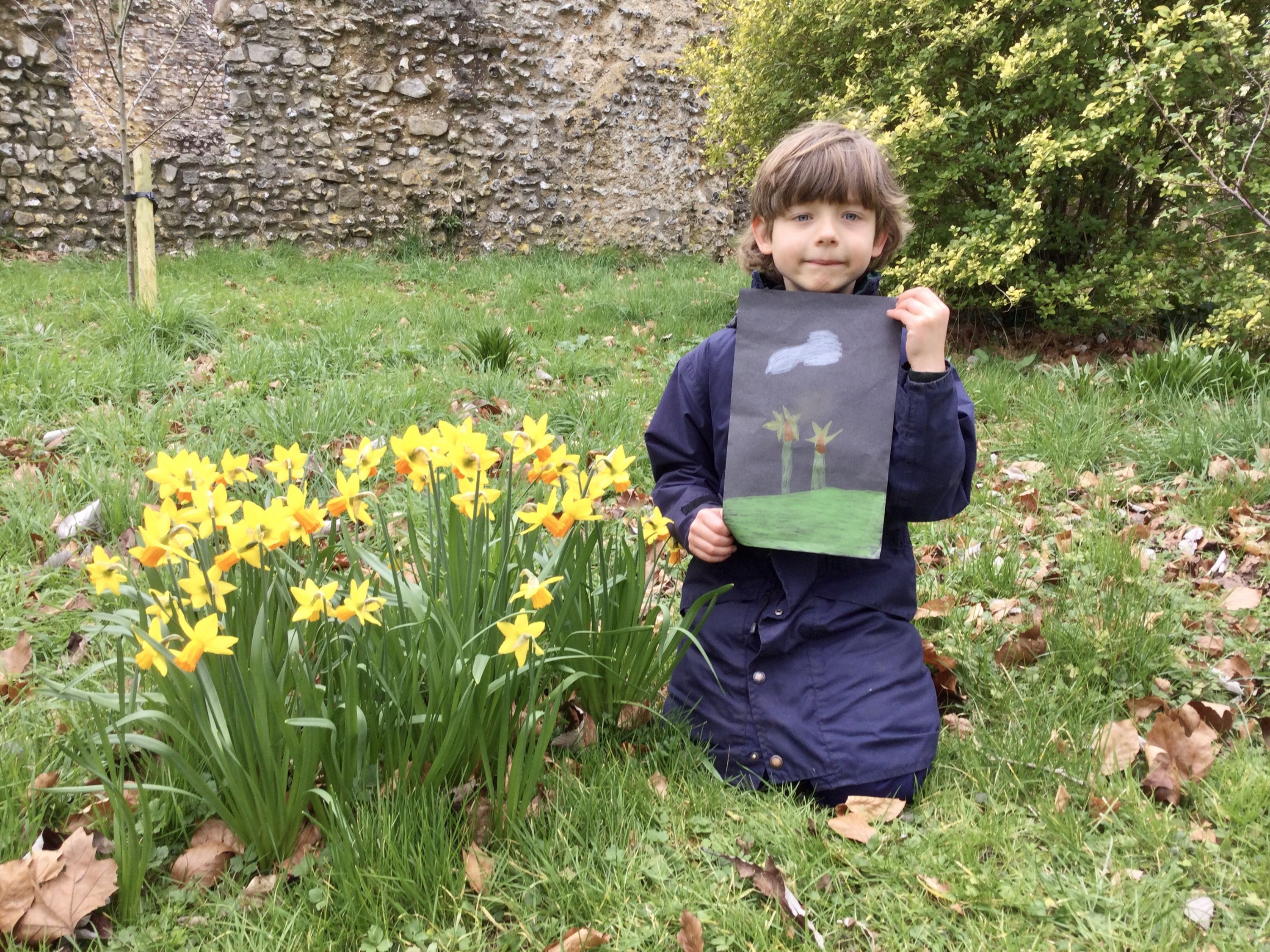 Year 2 spent the first part of their session clearing out their allotment boxes in preparation for planting next term. We then turned our focus to all the beautiful daffodils that are flowering at the moment. Some boys chose to do some close observational drawings of the daffodils whilst others took accurate measurements of the flowers.