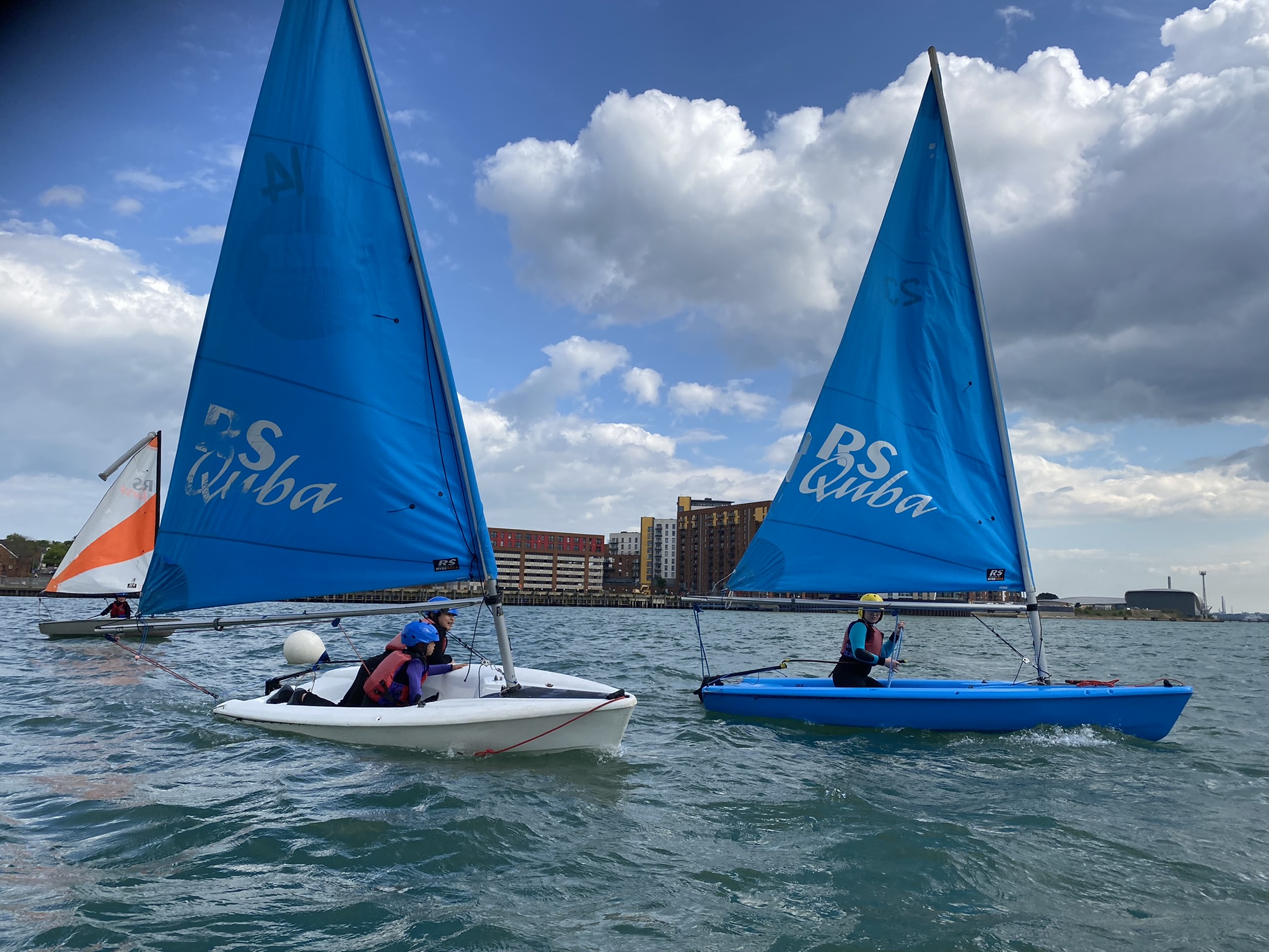 After spending time on the 'Five Essentials' in the classroom, the boys took their boats - most were single-handed this week - and launched at high tide to put the theory to practice. The 'Five Essentials' focus on course made good, sails, balance, trim, and daggerboard which form the elements of making the boat sail as well as possible. With plenty of room, the boys had a productive afternoon sailing a triangular course around the buoys as they were coached by the instructors. A variety of boats were used this week: the blue RS Qubas, the small orange RS Teras and the big RS Zests. As the breeze grew, gybing became difficult and the course was altered to a sausage shape where they sailed in a figure of eight to tack round the buoys at each end instead.