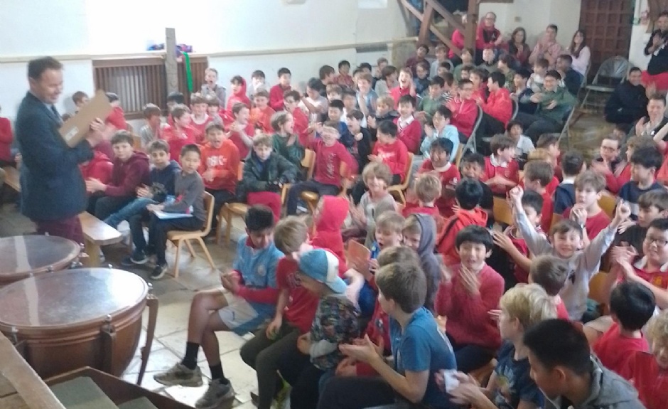 A variety of acts entertained the school for half an hour in the Pilgrims’ Hall: Theo W and Harry C made us laugh with their comedy act; Teddy W and Yan Z each showed impressive skills with their Rubik’s cubes; Bertie L entertained with his yo-yo skills; Wilfred S and Louis B amused with their very different, but equally entertaining acts; finally, young Leo HP wowed with his dance skills.
