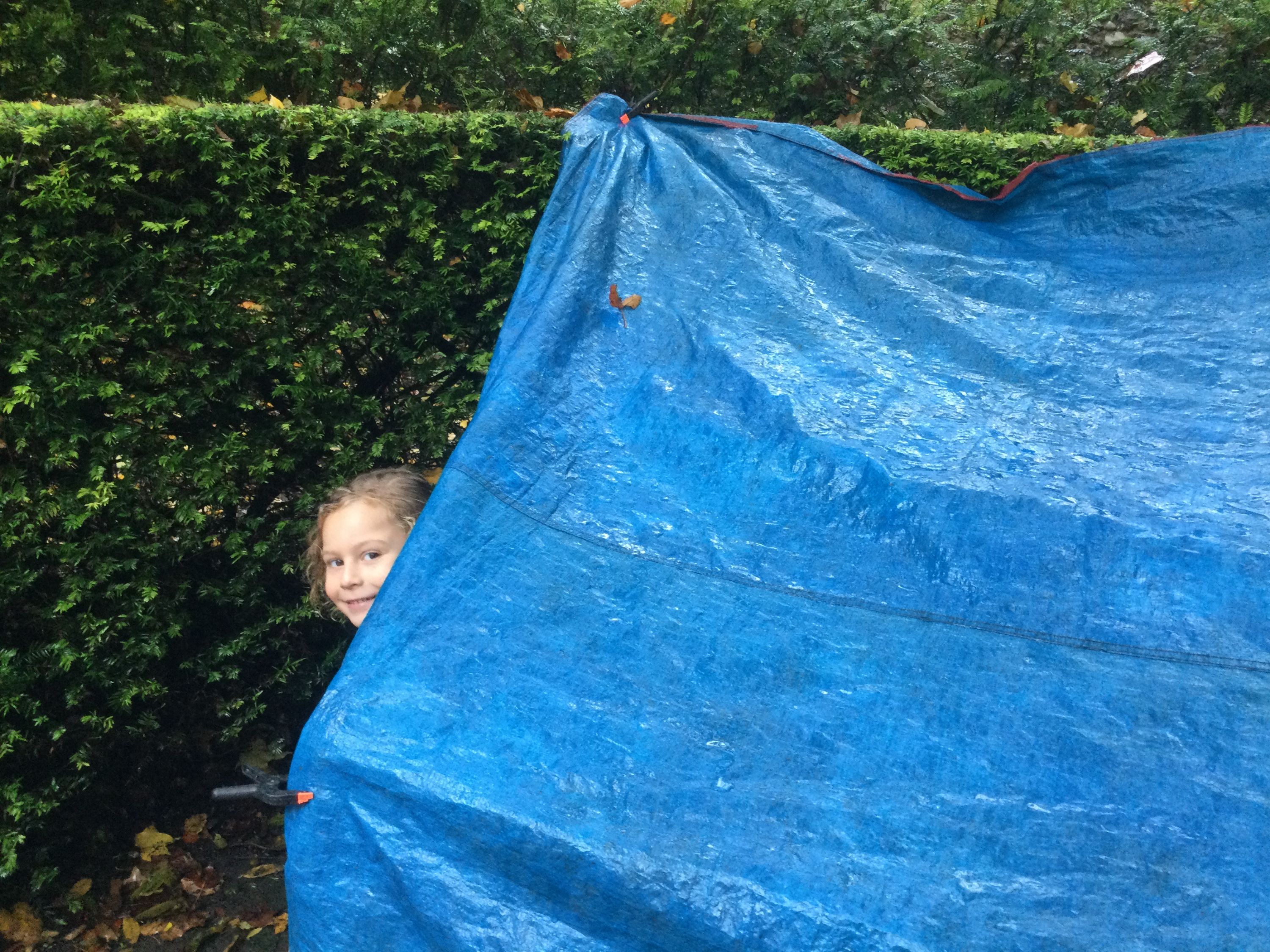 Bit of a wet Forest School for Year 1, but that didn’t stop us. After exploring natural shelters under trees and bushes, the boys had a go at creating their own shelter using tarps, clips and bungees. We also had fun painting with rainwater and seeing how much rain we could actually collect.