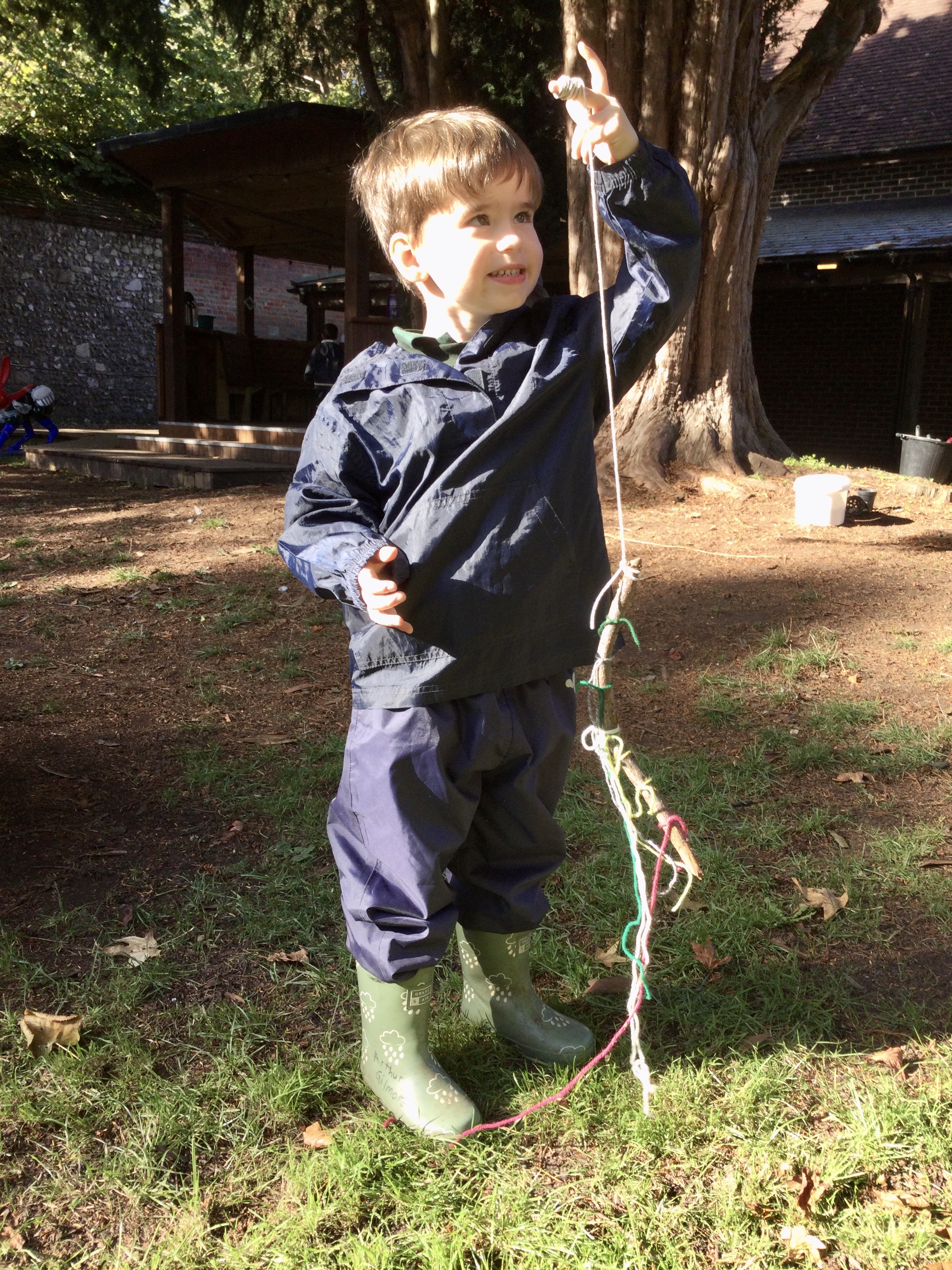 I always enjoy teaching knot skills to the boys, as they are so useful in many of our Forest School sessions. This week, the boys in Year R were introduced to an open clove hitch knot, which is a knot we use a lot in our sessions. Once the boys had become familiar with the knot, we used it to create a log dog pet. With the lead attached, the boys decorated their little pets with wool, took them for a walk, and even had a go at performing tricks with them!