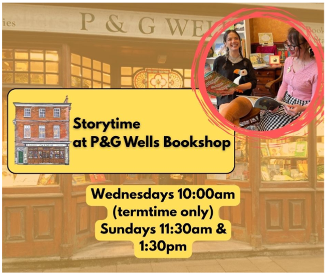 We are excited to let families know that from Sunday 5 October, P&G Wells are offering free story-time sessions at 11.30am and 1.30pm, in addition to our regular Wednesday sessions at 10am during term time.