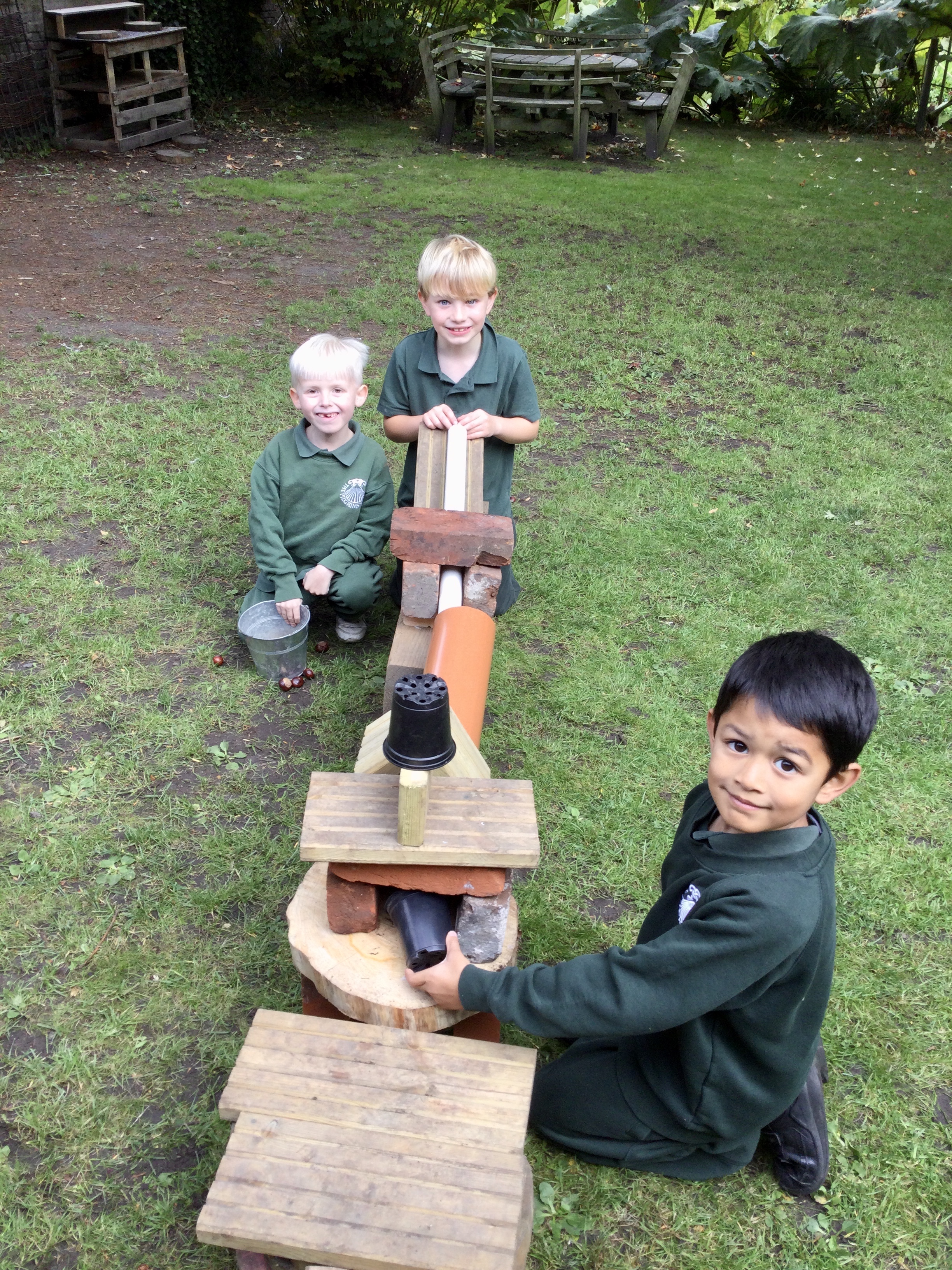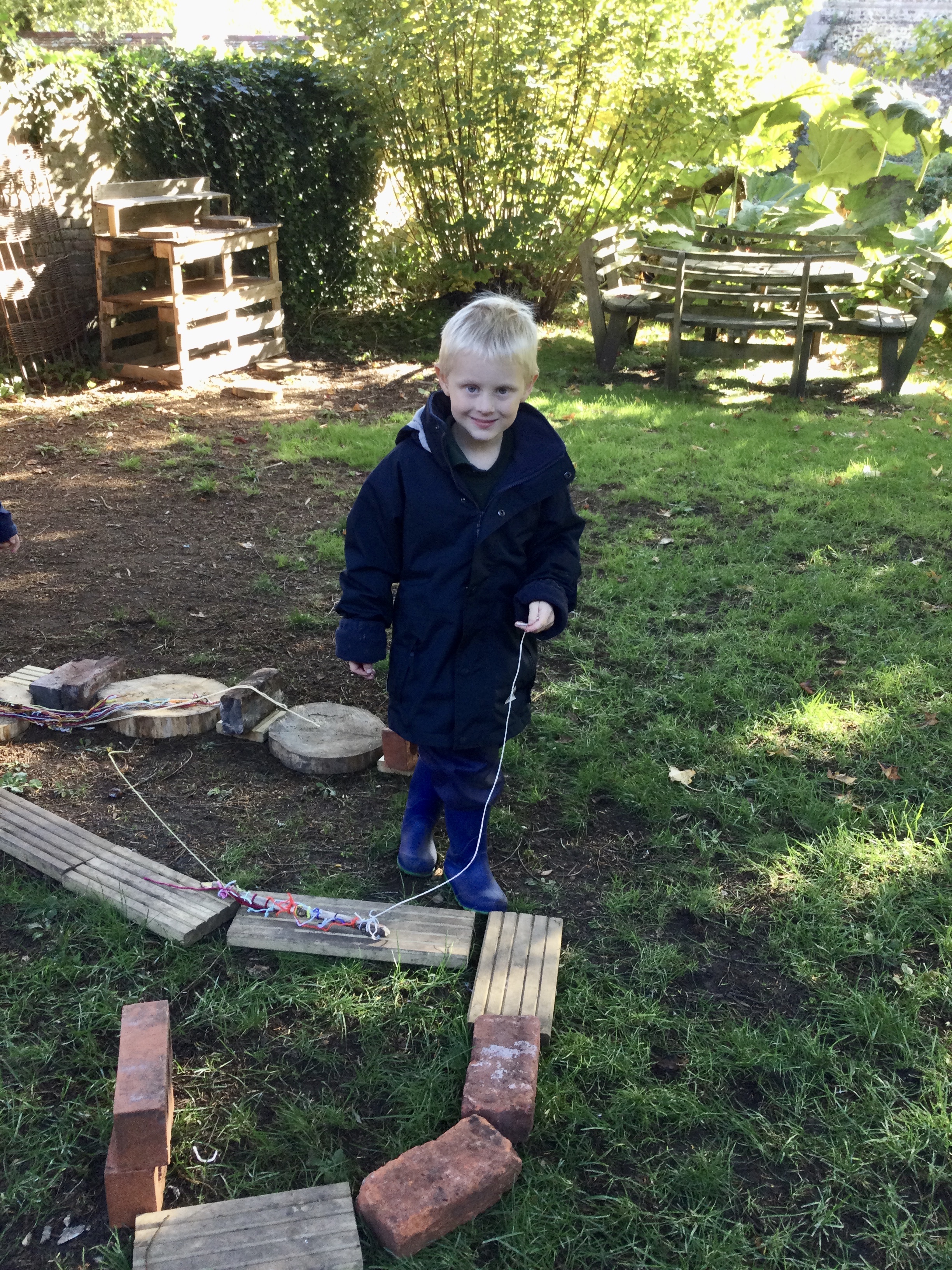 This week, Year 2’s session linked in with their science curriculum. We used the environment to help us identify different materials and explore how materials are used in the wider world. We also chatted about the suitability of the materials and why they might be used in certain situations. Some of the boys enjoyed making a conker run using different materials.