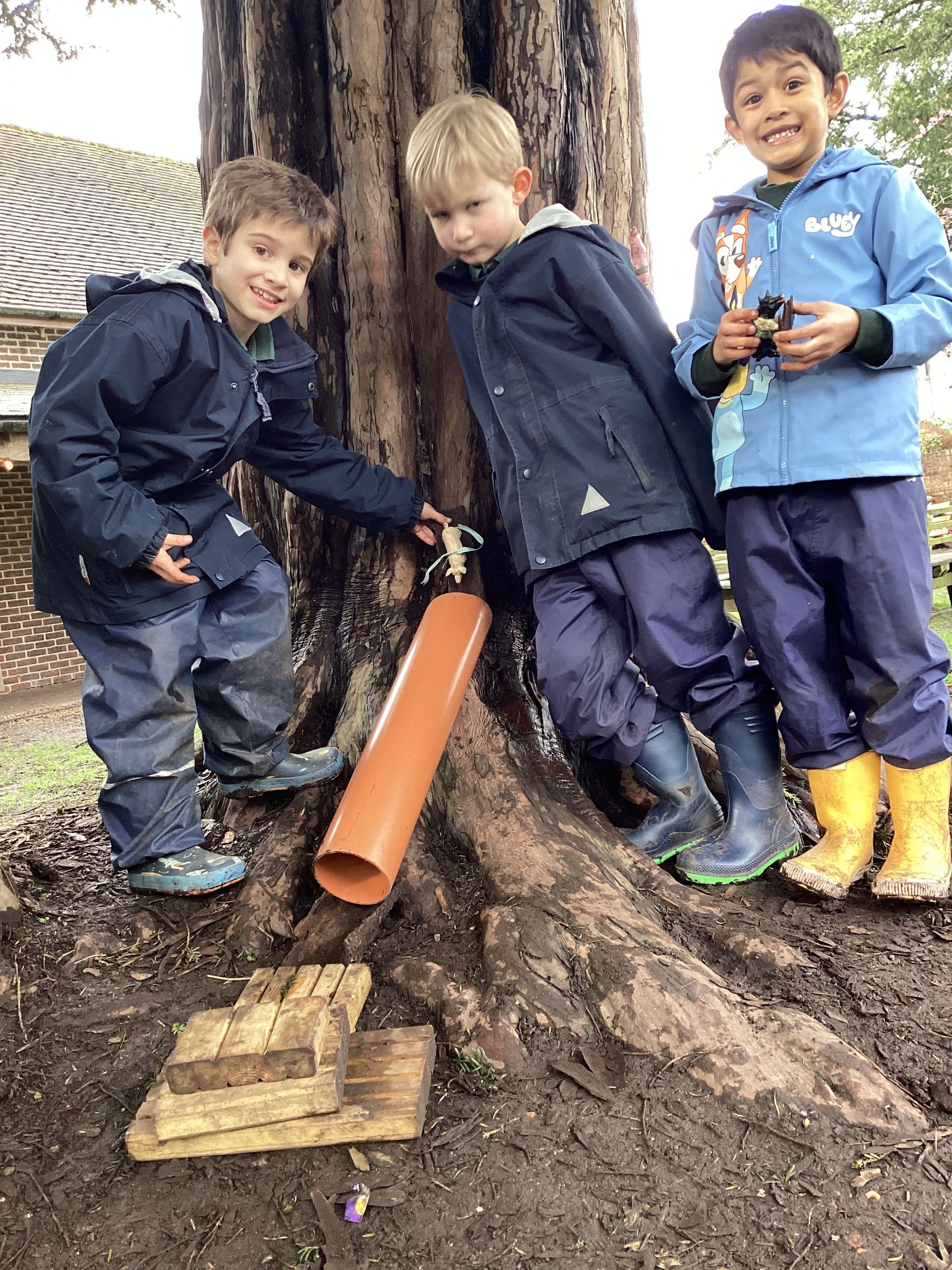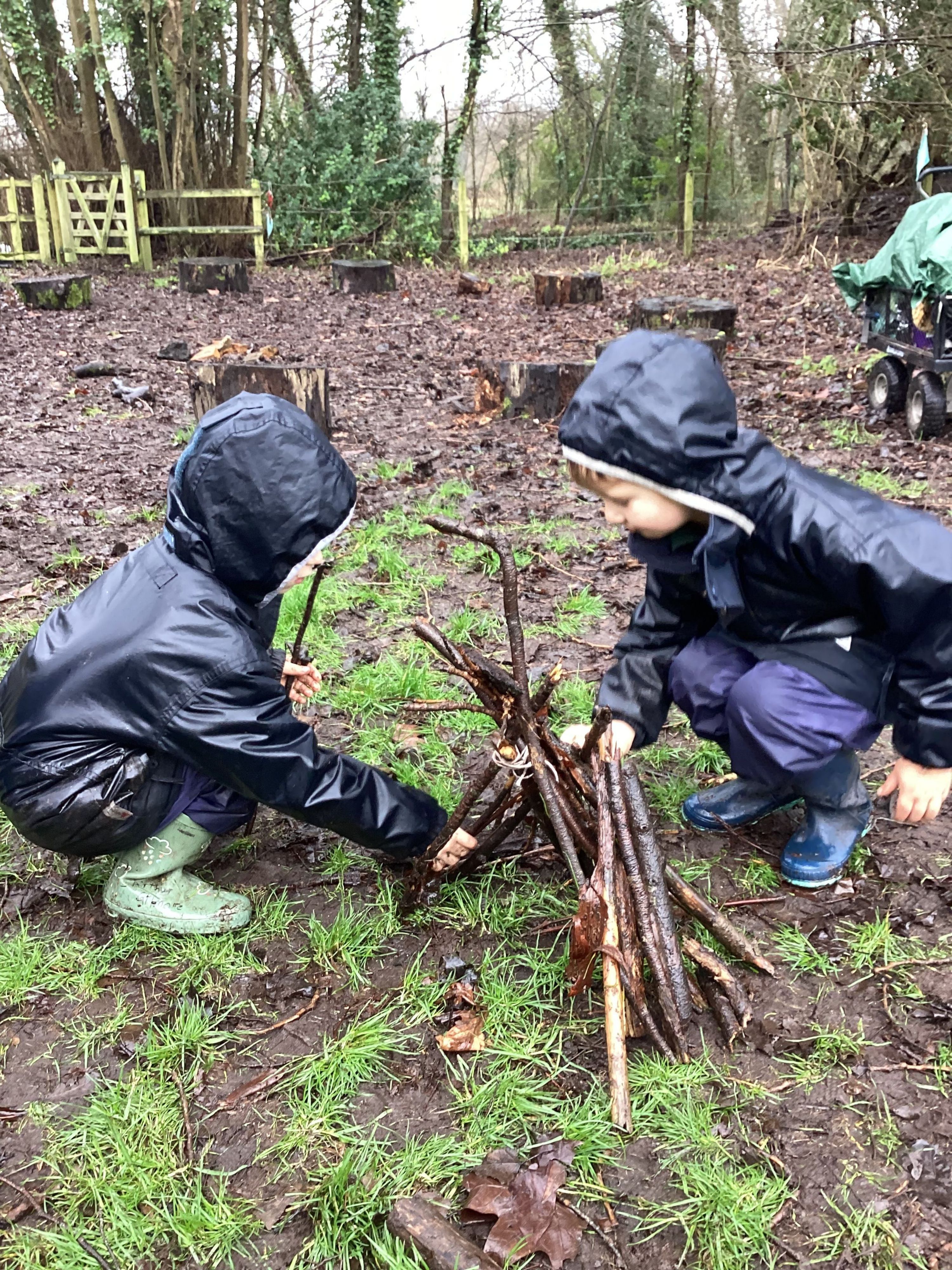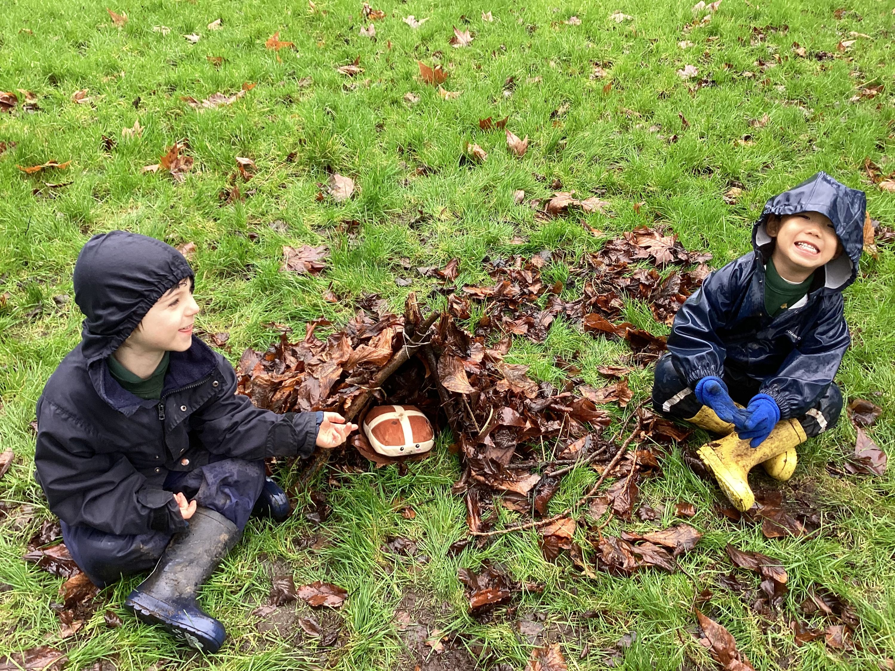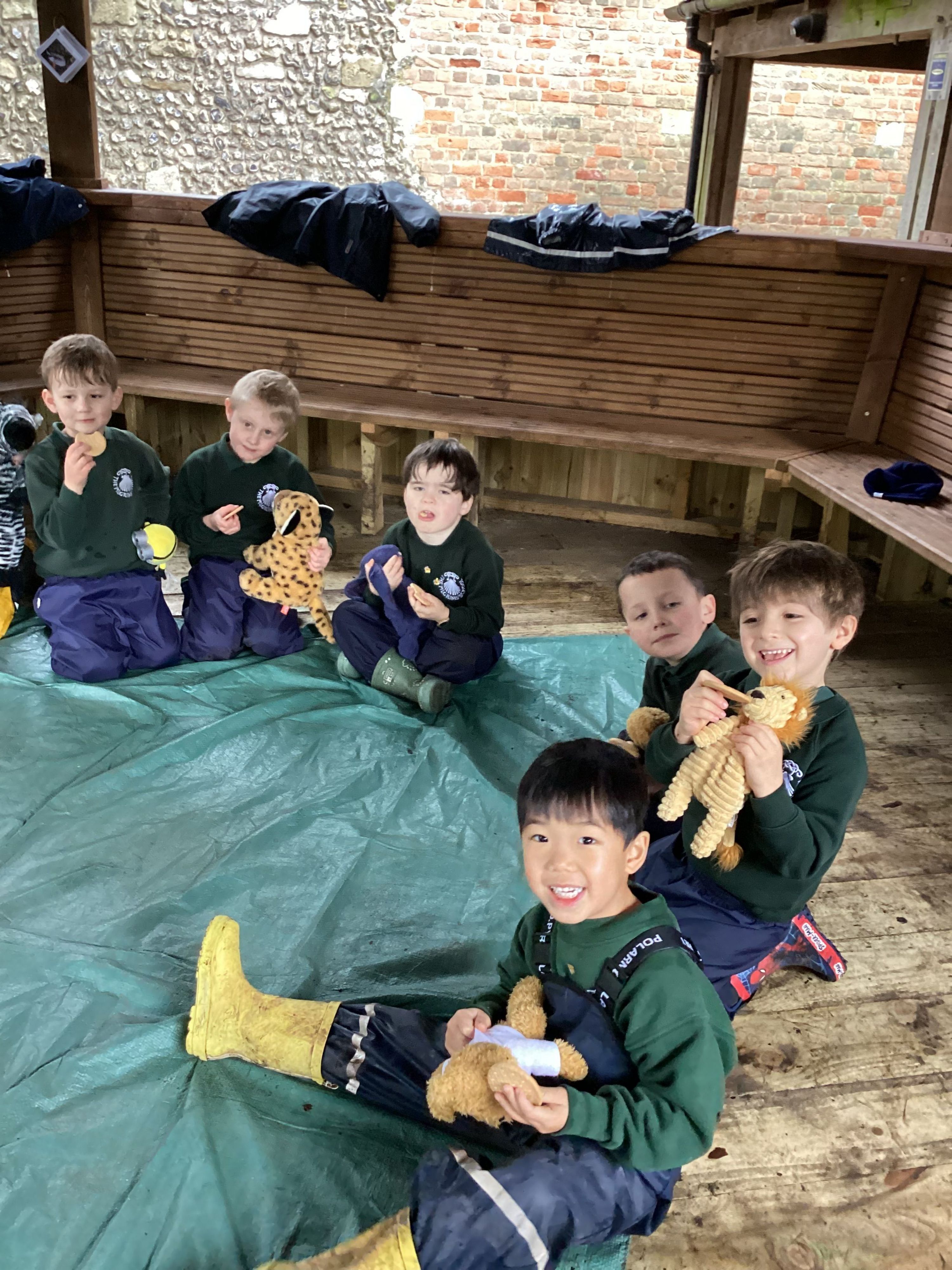 It was very exciting for Year R this week, as we invited the boys' favourite teddy bear to join us for Forest School. After learning how sticks can be tied together, the boys had fun trying to create their own unique and personalised tipi for their beloved cuddly toy. However, as it was such a wet Forest School, we decided the teddies should stay warm and dry in the trolley and just watch. They joined us later, for our teddy bears’ picnic in The Bower House.