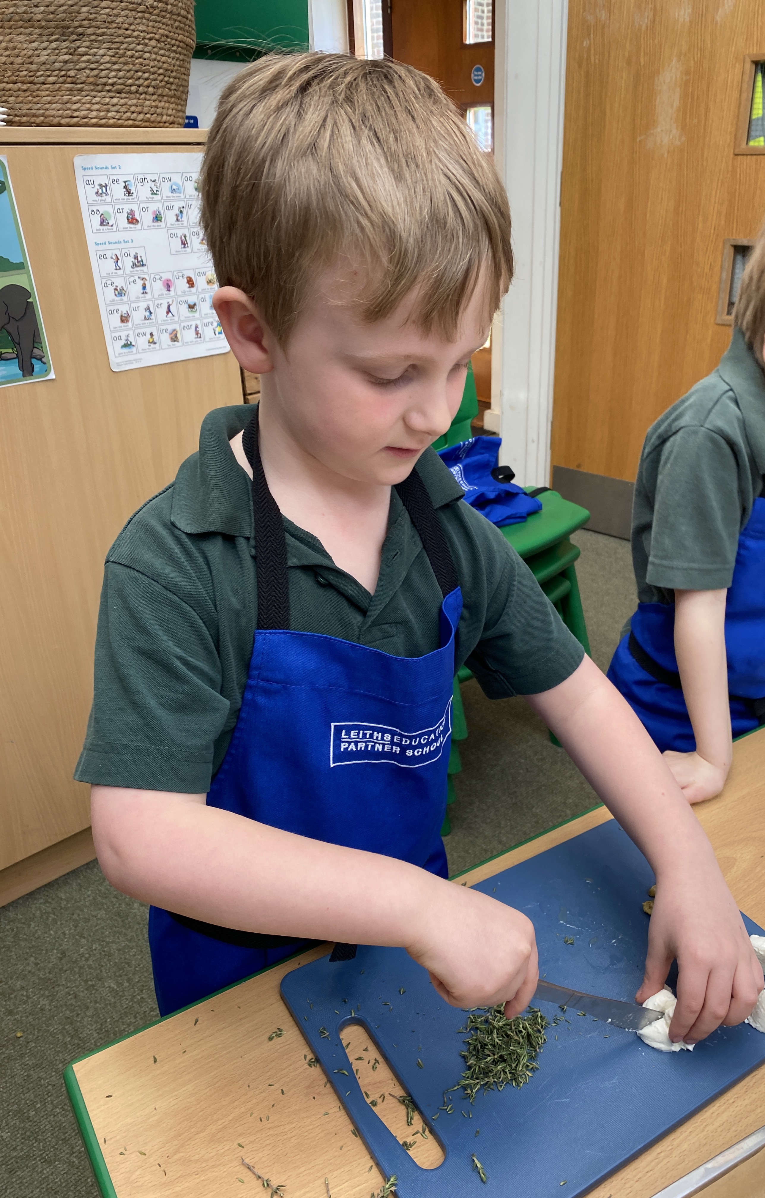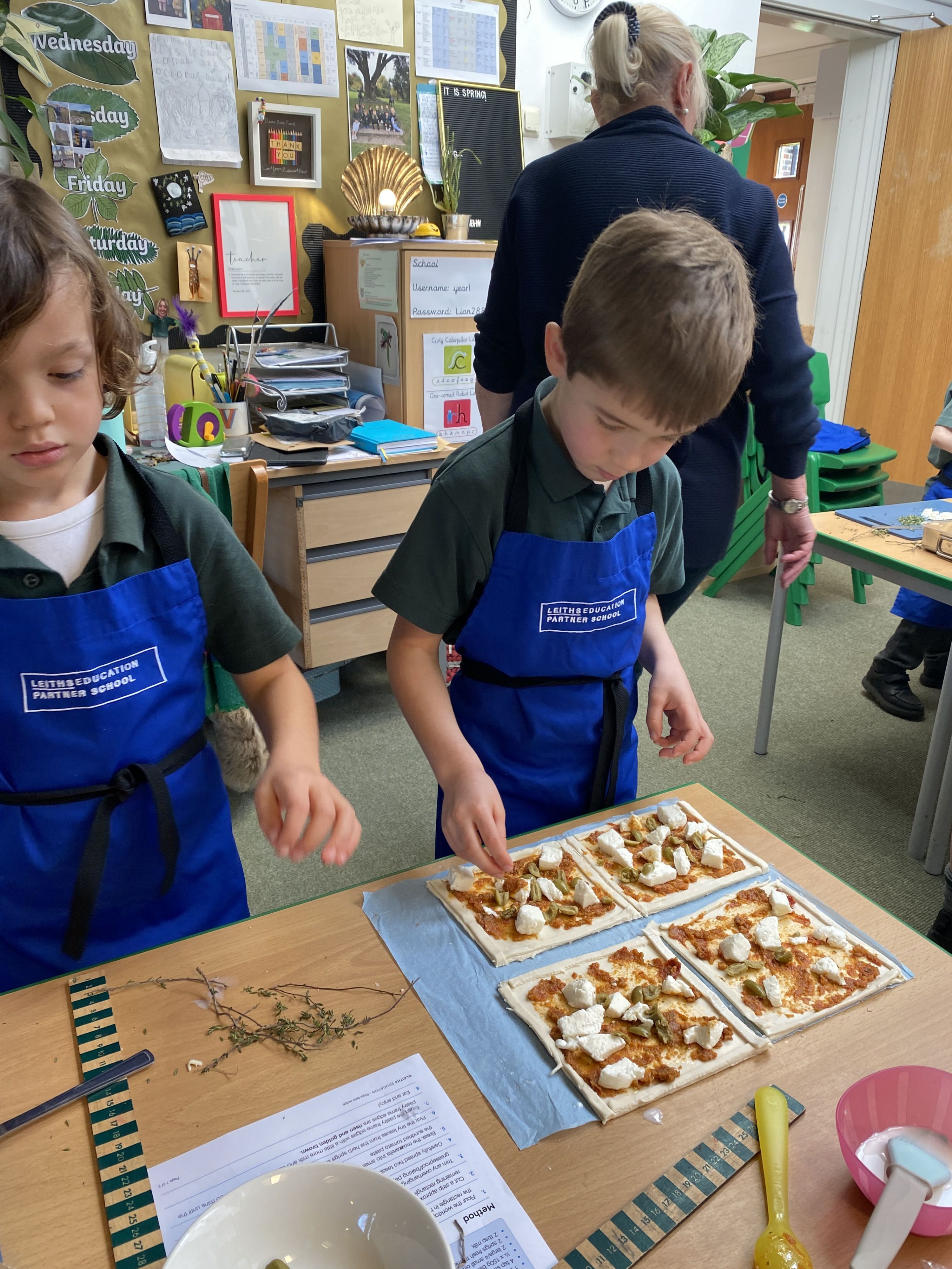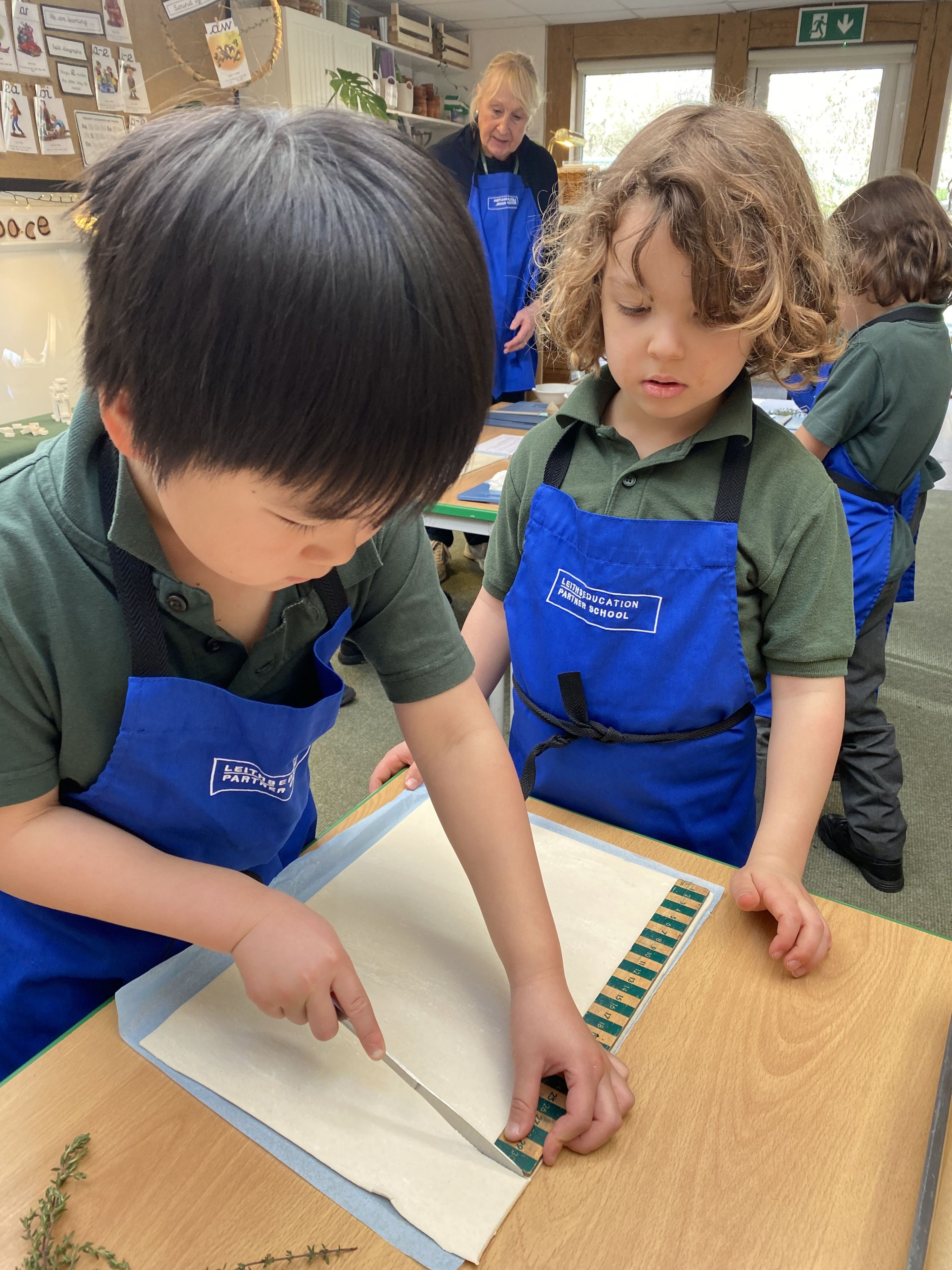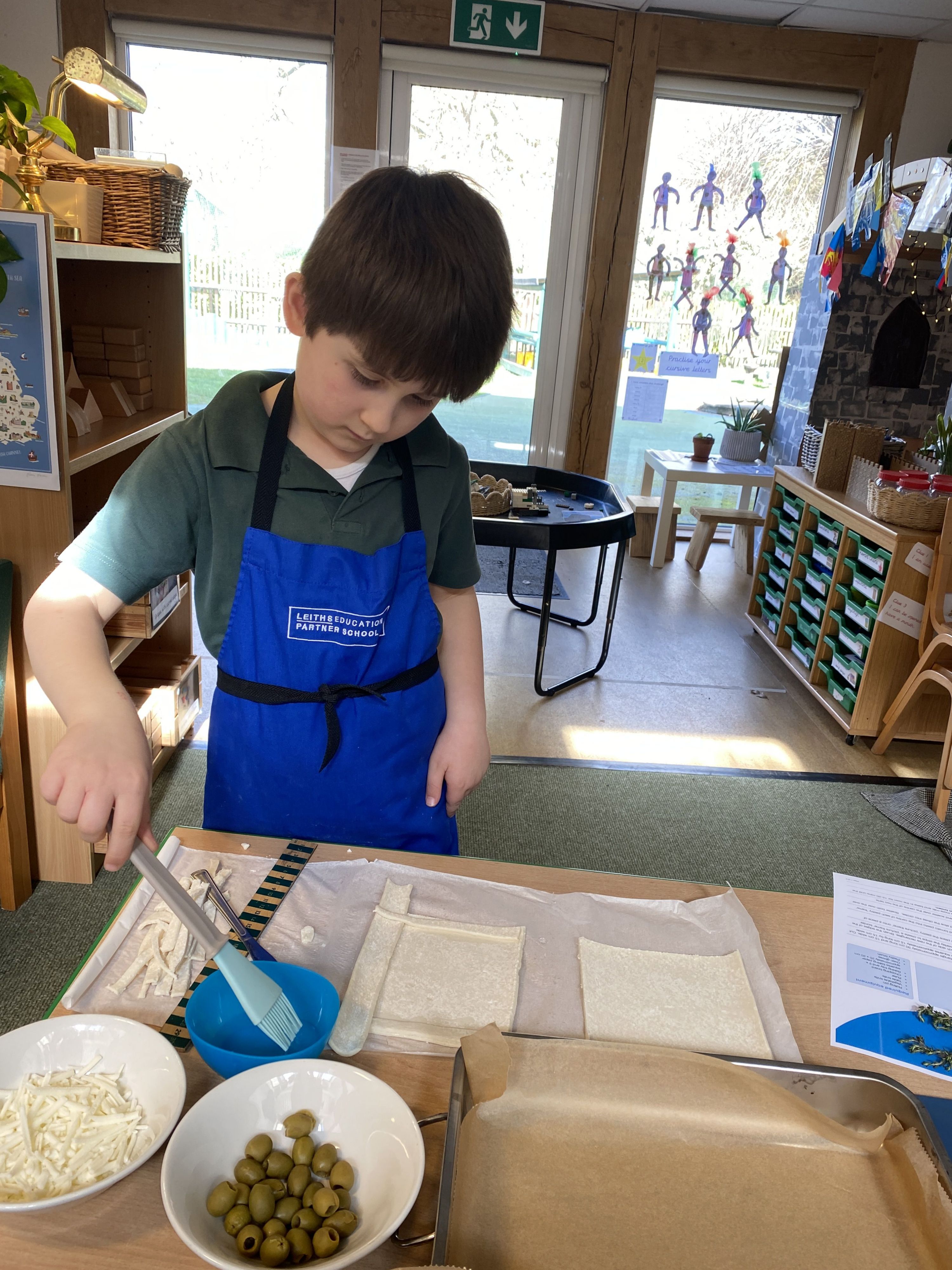 What a fun week! There was so much learning to capture. Our cookery session involved not only cooking but also maths and science skills. The boys measured, halved and quartered pastry, used pastry brushes, and practised the bridge-hold to cut toppings safely just like real chefs.