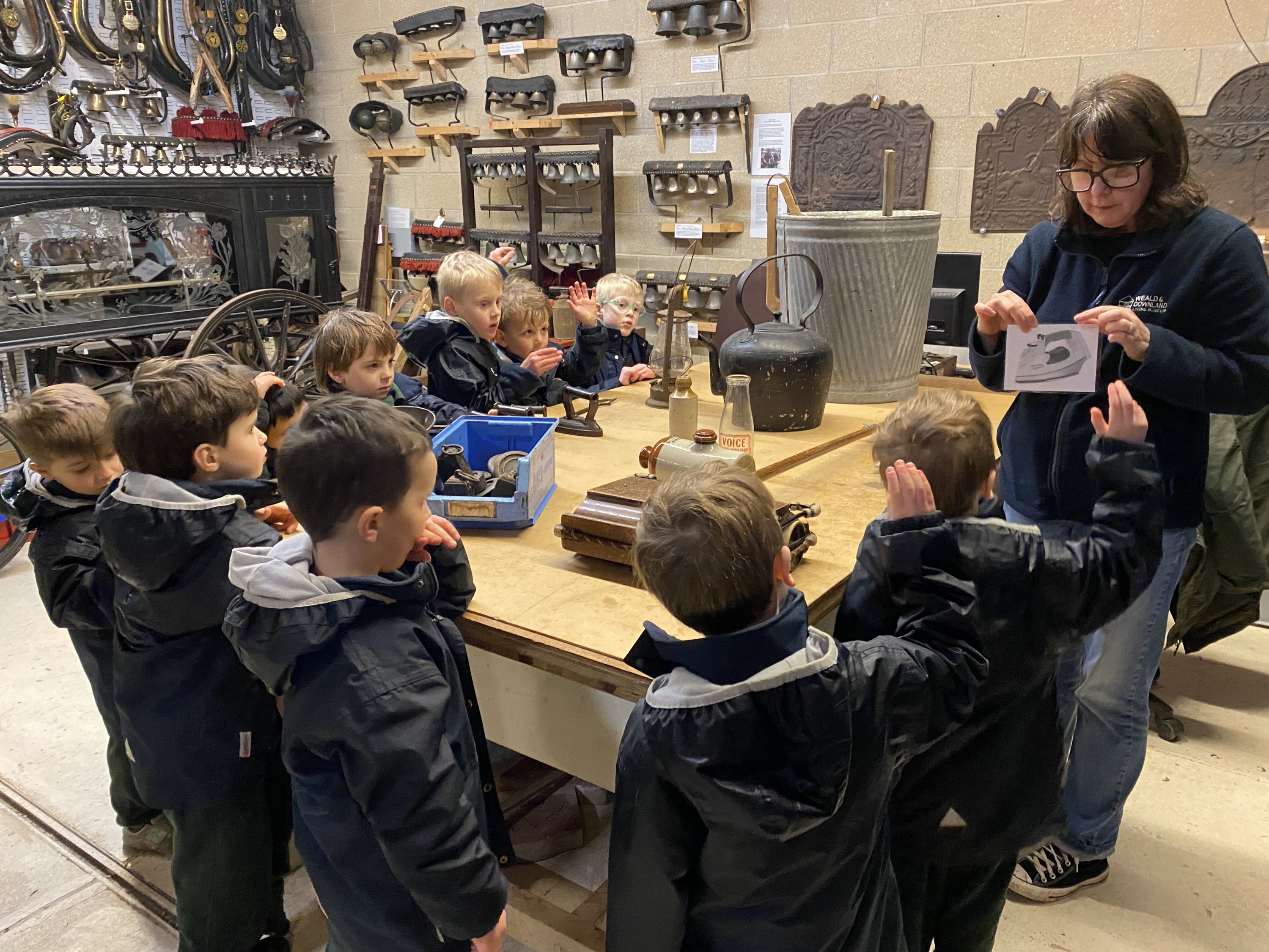 In the second workshop, the boys became history detectives as they explored artefacts from the past. They carefully examined a variety of household objects and discussed how these relate to the items we use today. Together, they compared older and modern versions of everyday objects such as kettles, washing machines, hoovers, irons, hot water bottles and weighing scales. It was wonderful to see them making connections between life in the past and the world they know today.