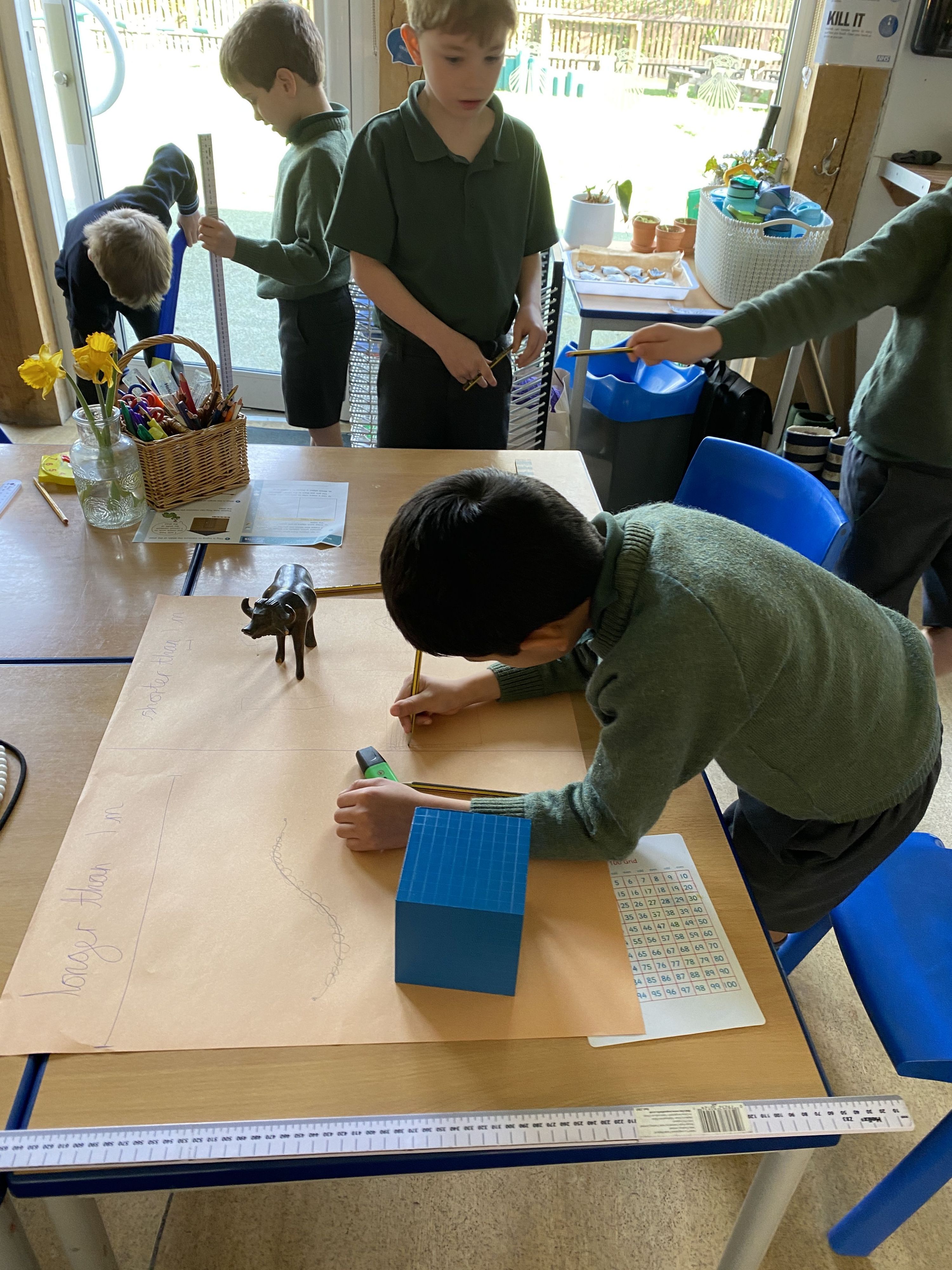 In Maths, the boys have also been developing their measuring skills, starting with small classroom objects before moving on to measuring larger spaces using metre sticks and trundle wheels. It has been a great opportunity to practise a practical skill used in everyday life — just as I explained when buying my car and needing to measure carefully to make sure it would fit up my narrow driveway!