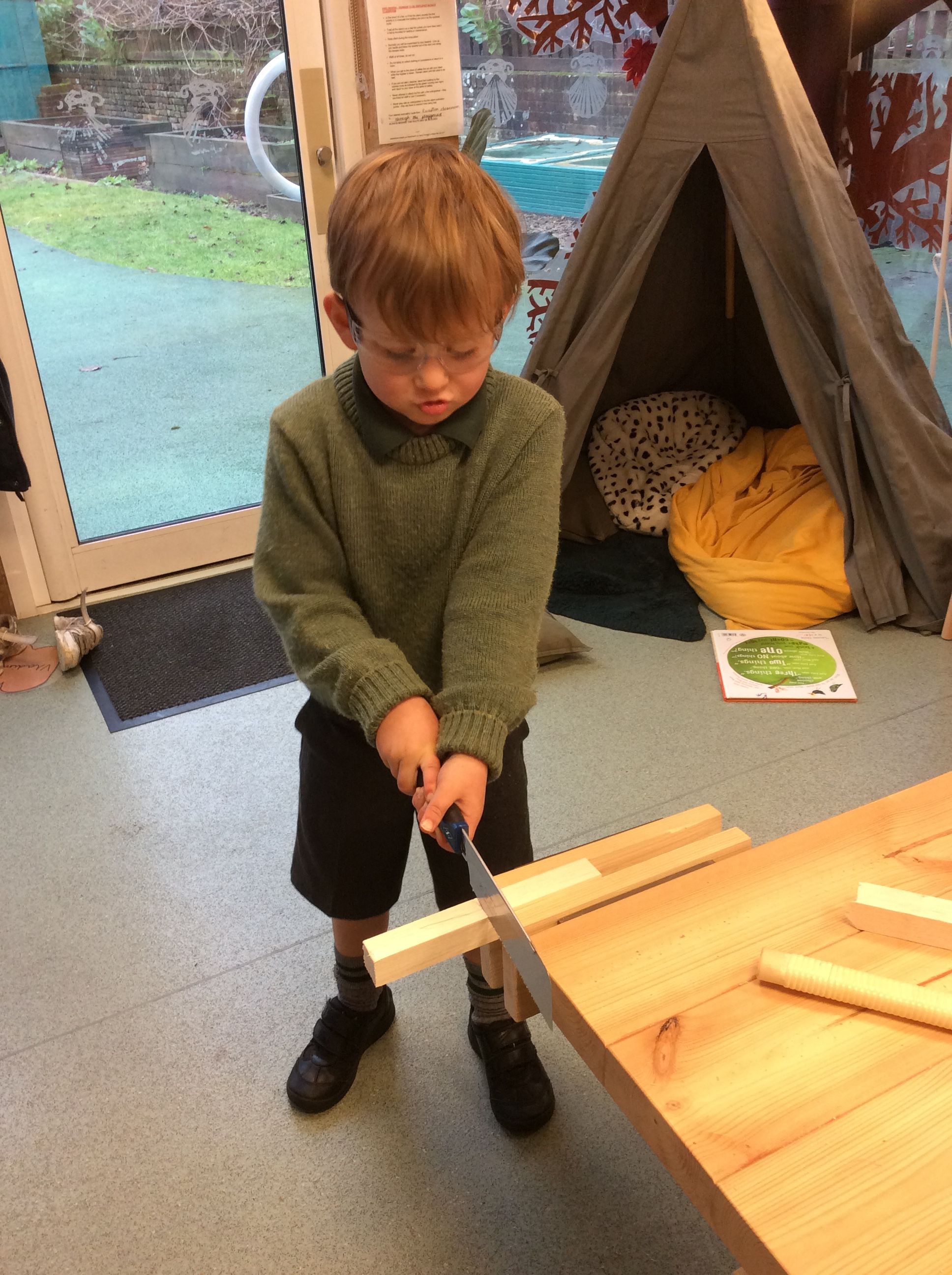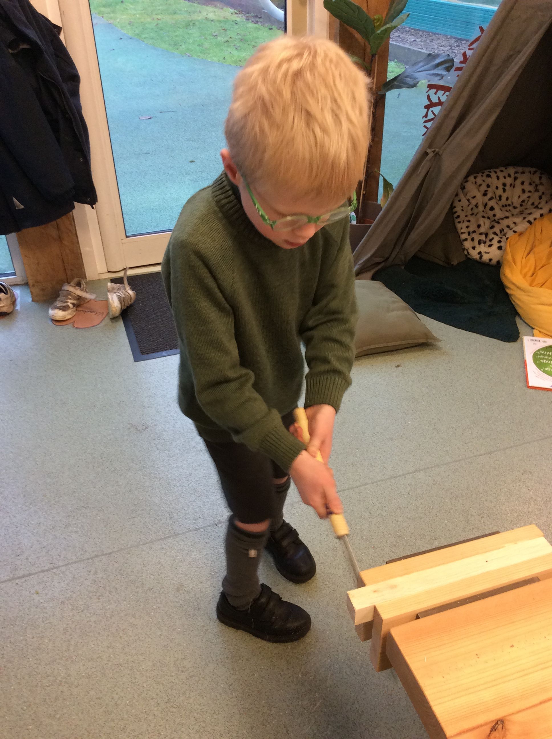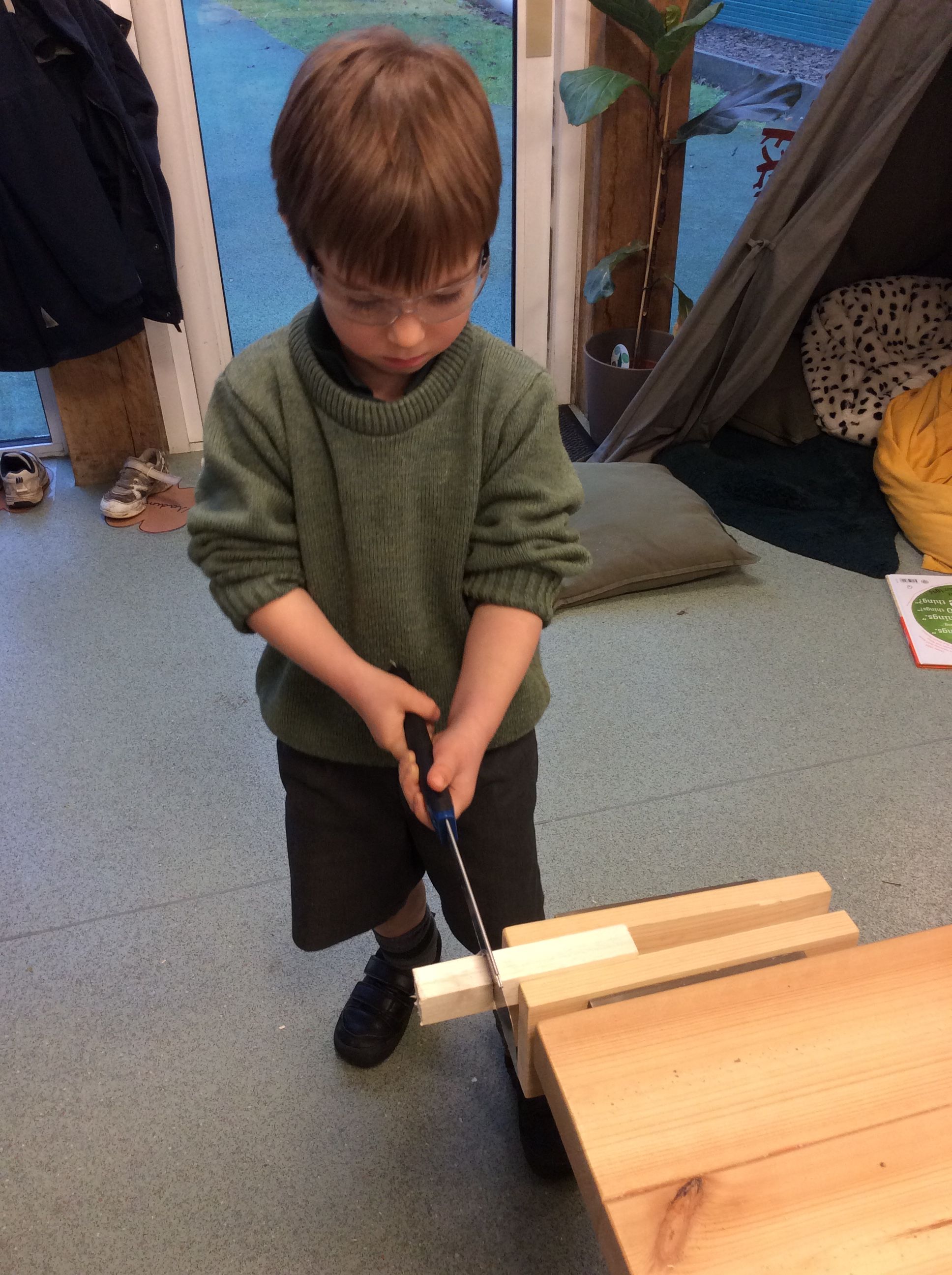 As well as starting our new theme, after much eager anticipation, the boys have now all been taught how to safely use our class woodwork bench. They learned how to use the vice to securely clamp wood ready for sawing, developing both confidence and care in their approach. Each child then measured and cut two precise 10 cm lengths of wood, which will be used to create something exciting in our next session. It was wonderful to see such focus, pride, and enthusiasm as they worked. Great excitement for next session!