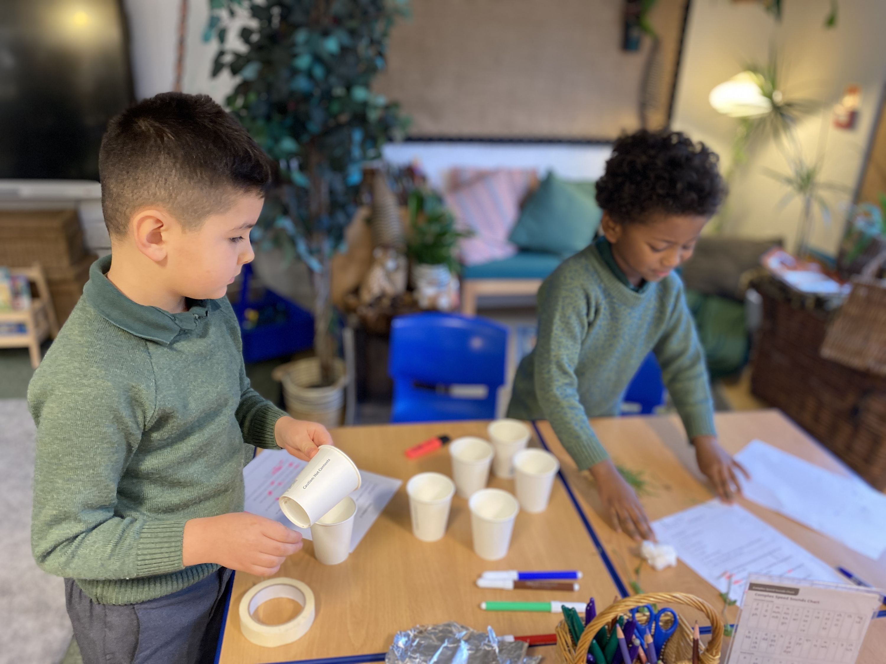 In Maths, the boys have been learning all about money. They have been sorting coins, making up different amounts, and using their skills in a class shop where they practised counting and problem-solving in real-life contexts.