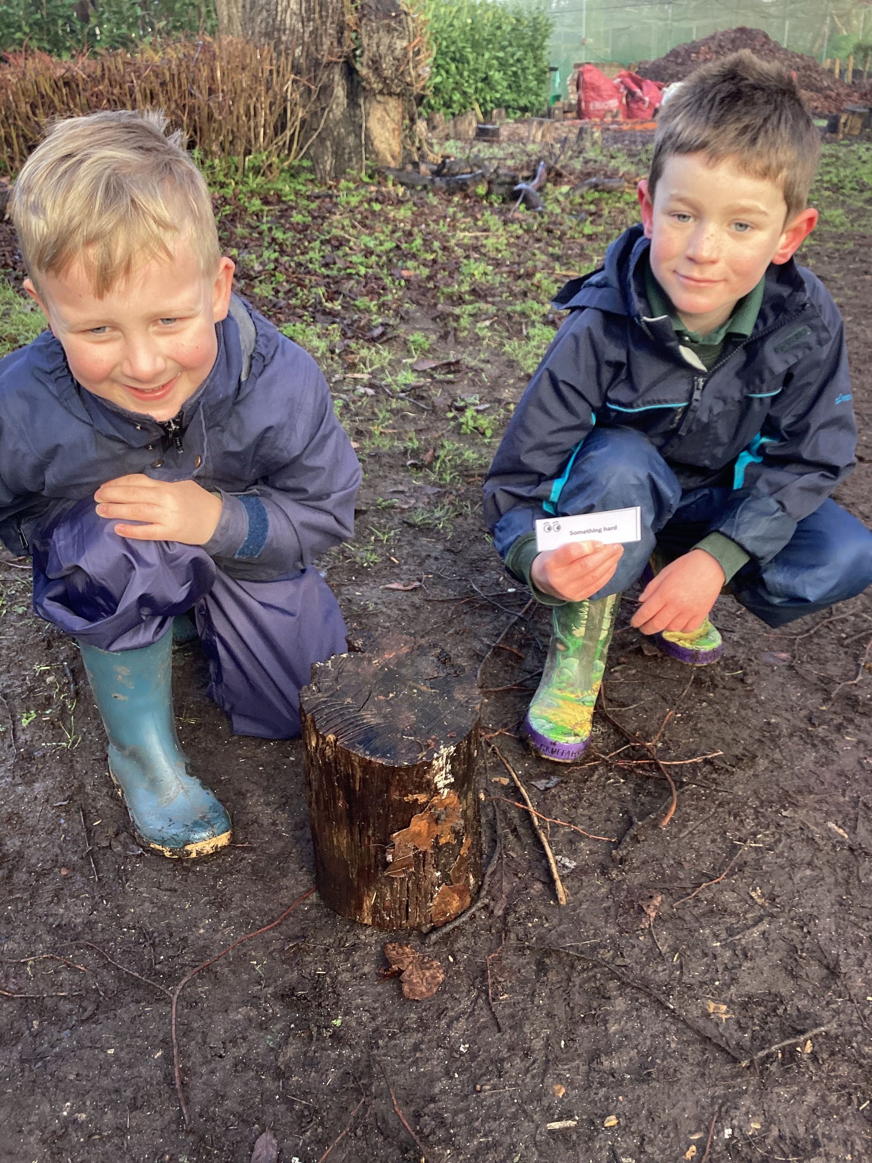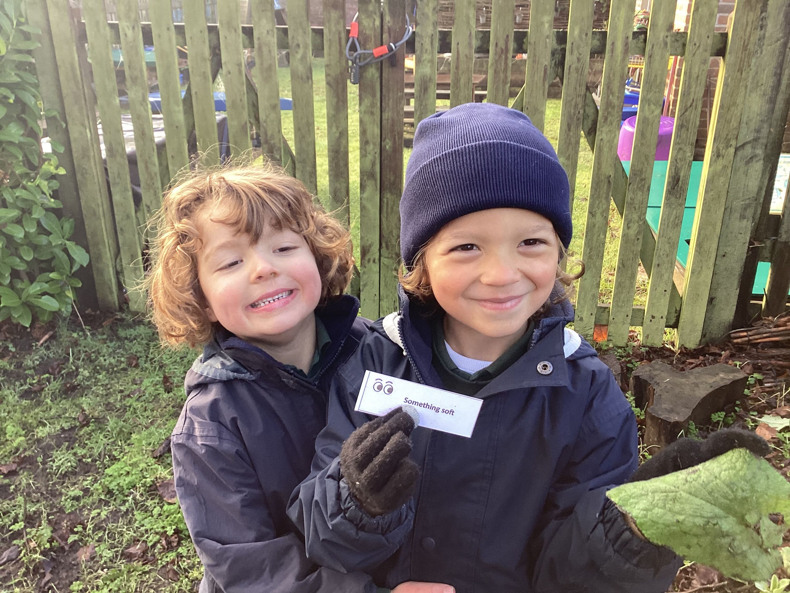 Year 1 had fun reconnecting with nature and enjoying a nature scavenger hunt. The boys randomly chose a scavenger card and then tried to find an example of it to place in their hoop. The boys worked cooperatively with each other and did a lot of running around and searching together, which helped us keep warm!