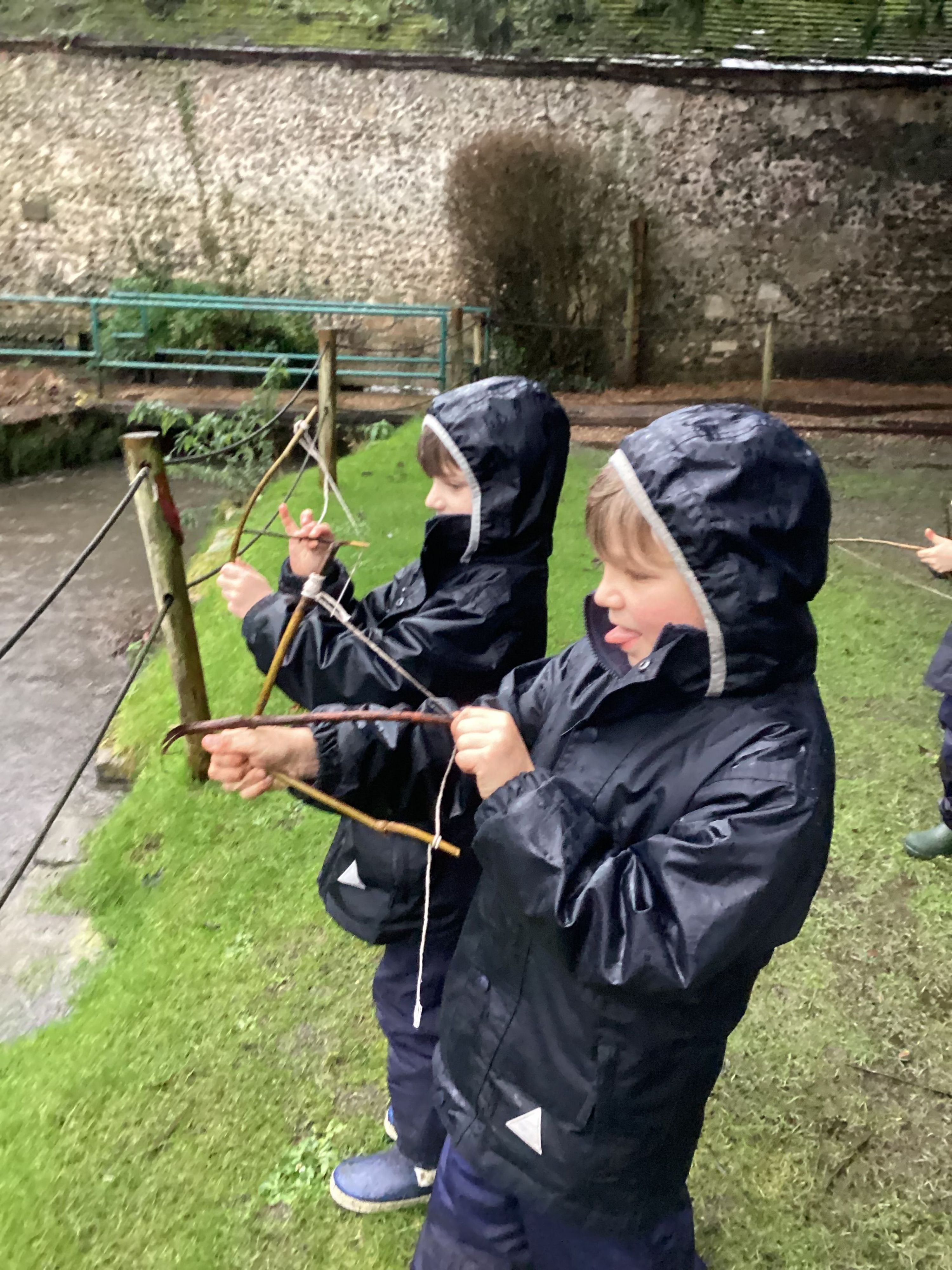 This week, Year 2 were given the challenge of seeing how far they could make a stick travel without throwing it. They were allowed to use two sticks and a piece of string and were given a clue that their knot skills were going to come in handy. After quite a bit of discussion and experimenting, the boys soon realised they had enough resources to make a bow and arrow. The boys became very excited when I announced we were going to have a competition to see whose arrow could go the furthest!