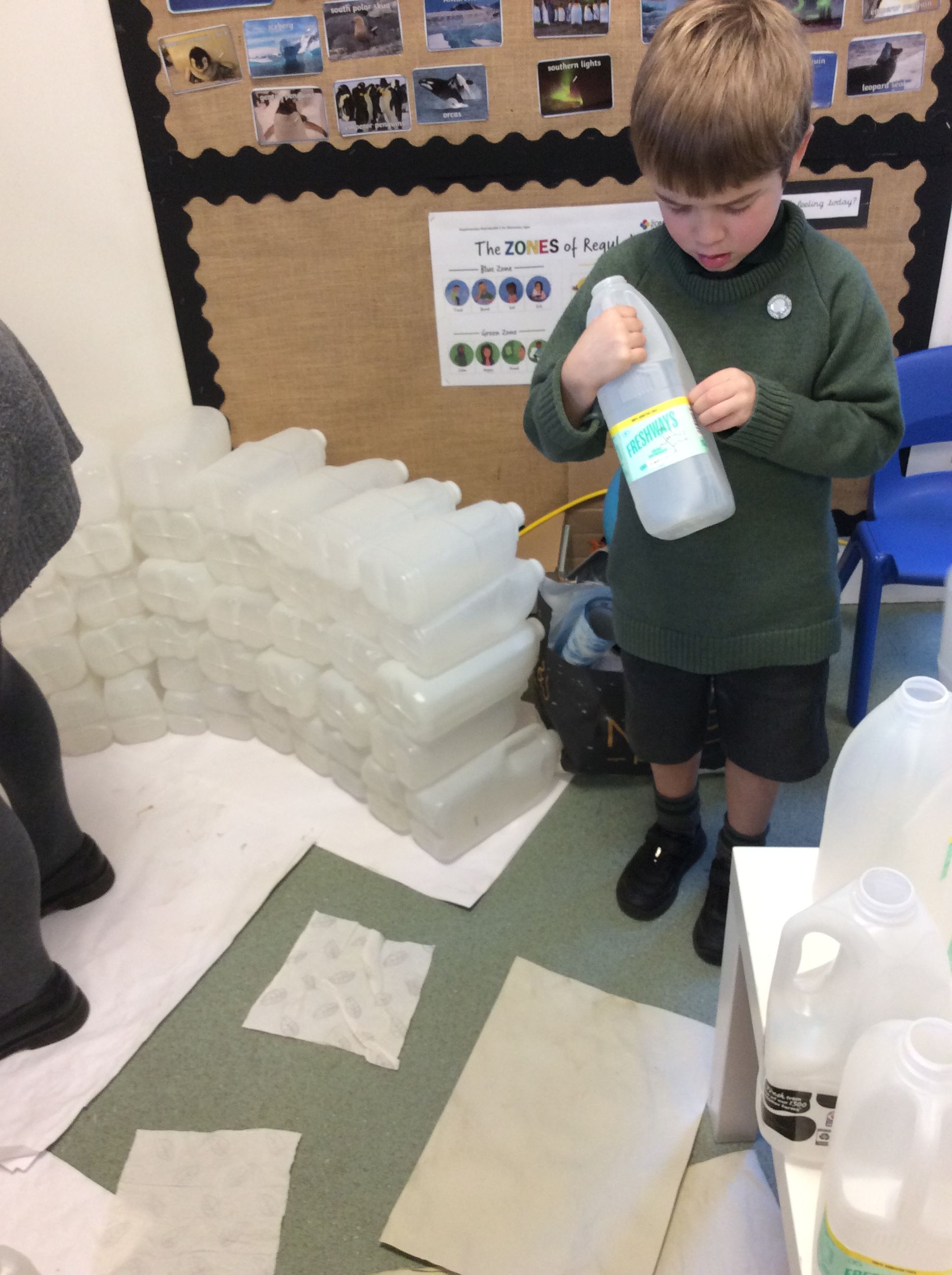 This week seems to have flown by in Reception Class. The boys have been busy continuing to help Miss Whitmore build our igloo creation. It is now generating its height well and the boys can see the layers emerging. Thank you so much for your milk bottle contributions! We do still need more but hope that by the end of next week the igloo will be complete.
