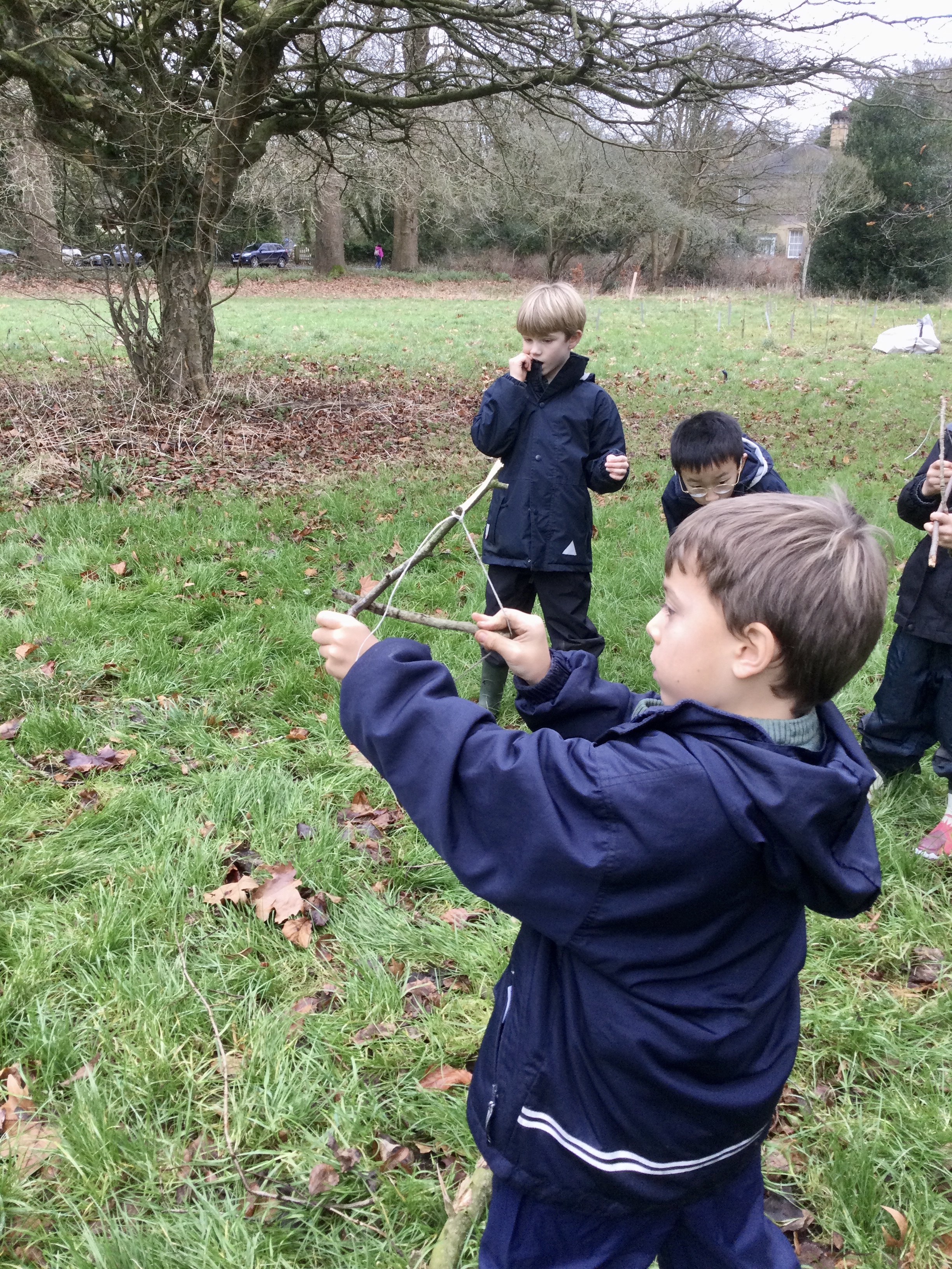 Using previously learned knowledge about knots, the boys in Year 2 were given the open-ended challenge of seeing how far they could make a stick travel using some string and another stick! Of course, the boys very quickly realised they had the required skills to make a bow and arrow and rose to the challenge. Designs were put to the test, with varying degrees of success, and at the end of the session we reflected on the challenges the boys had faced.