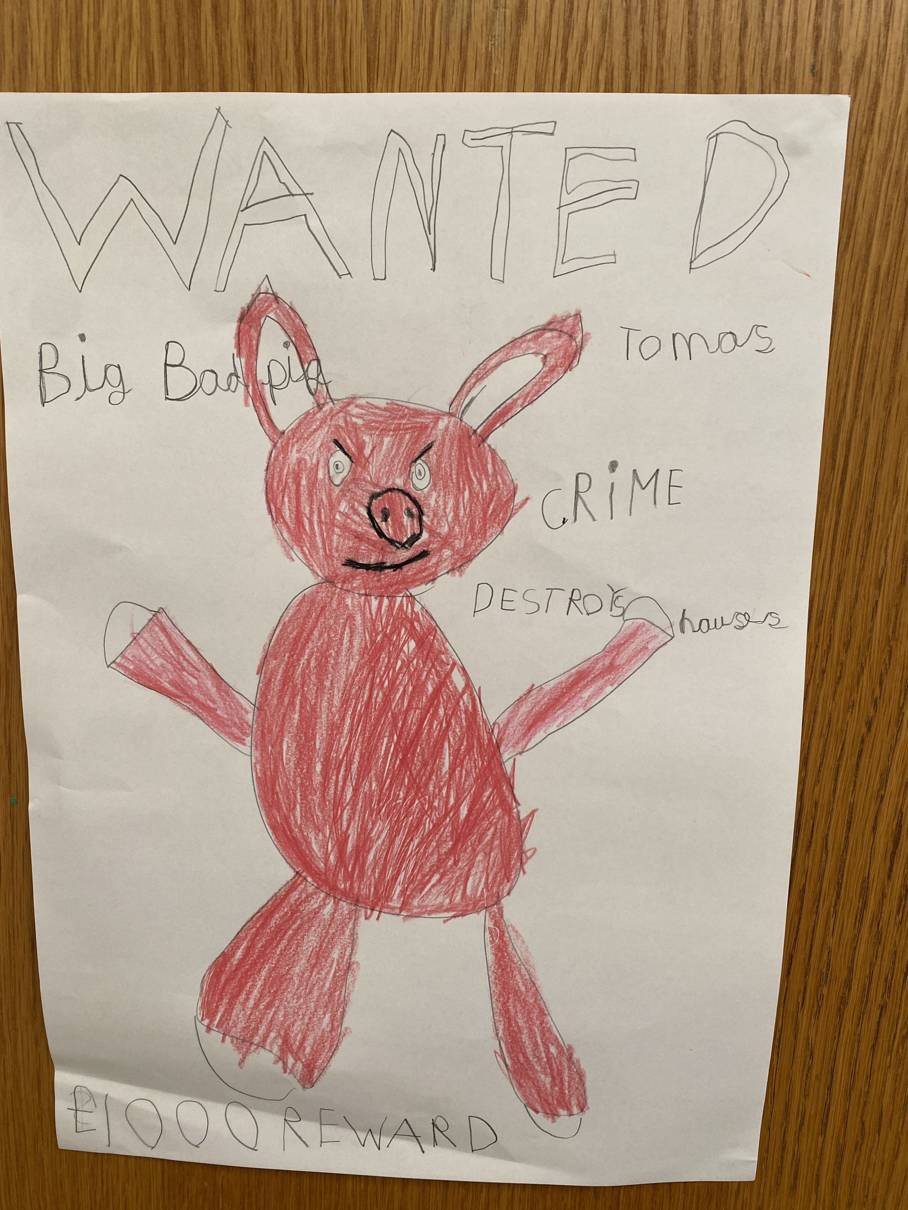 Year 2 have had another fantastic week of learning! The children continued their work on traditional tales with a twist and letter writing, and this time received a very special letter from none other than the Three Little Wolves. They needed our help to make some Wanted posters to catch the Big Bad Pig! The class worked brilliantly, using their imagination and writing skills to describe the character and warn others. It was wonderful to see everyone so engaged, creative, and enthusiastic as they combined storytelling with real purpose in their writing. Well done, Year 2!