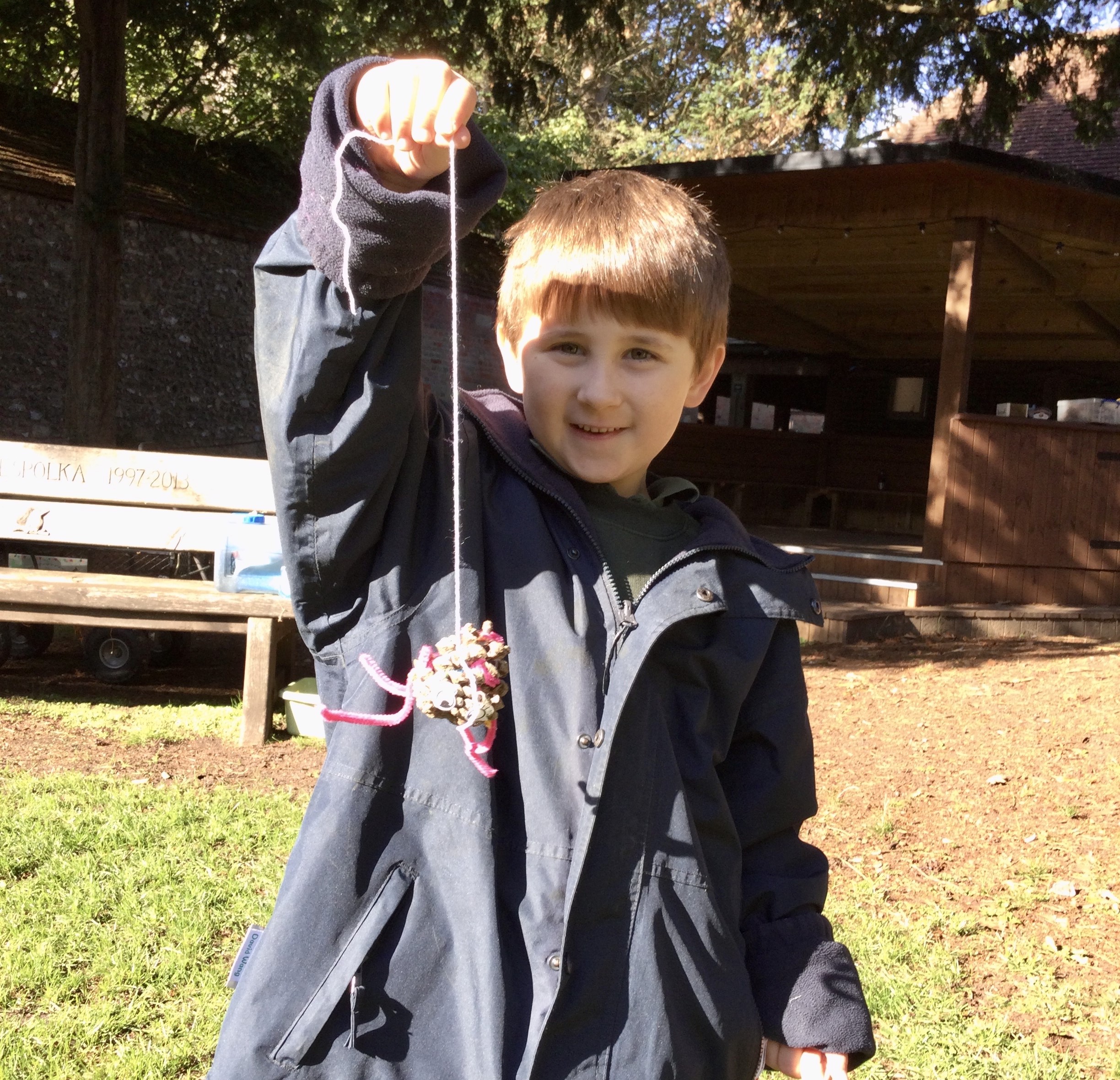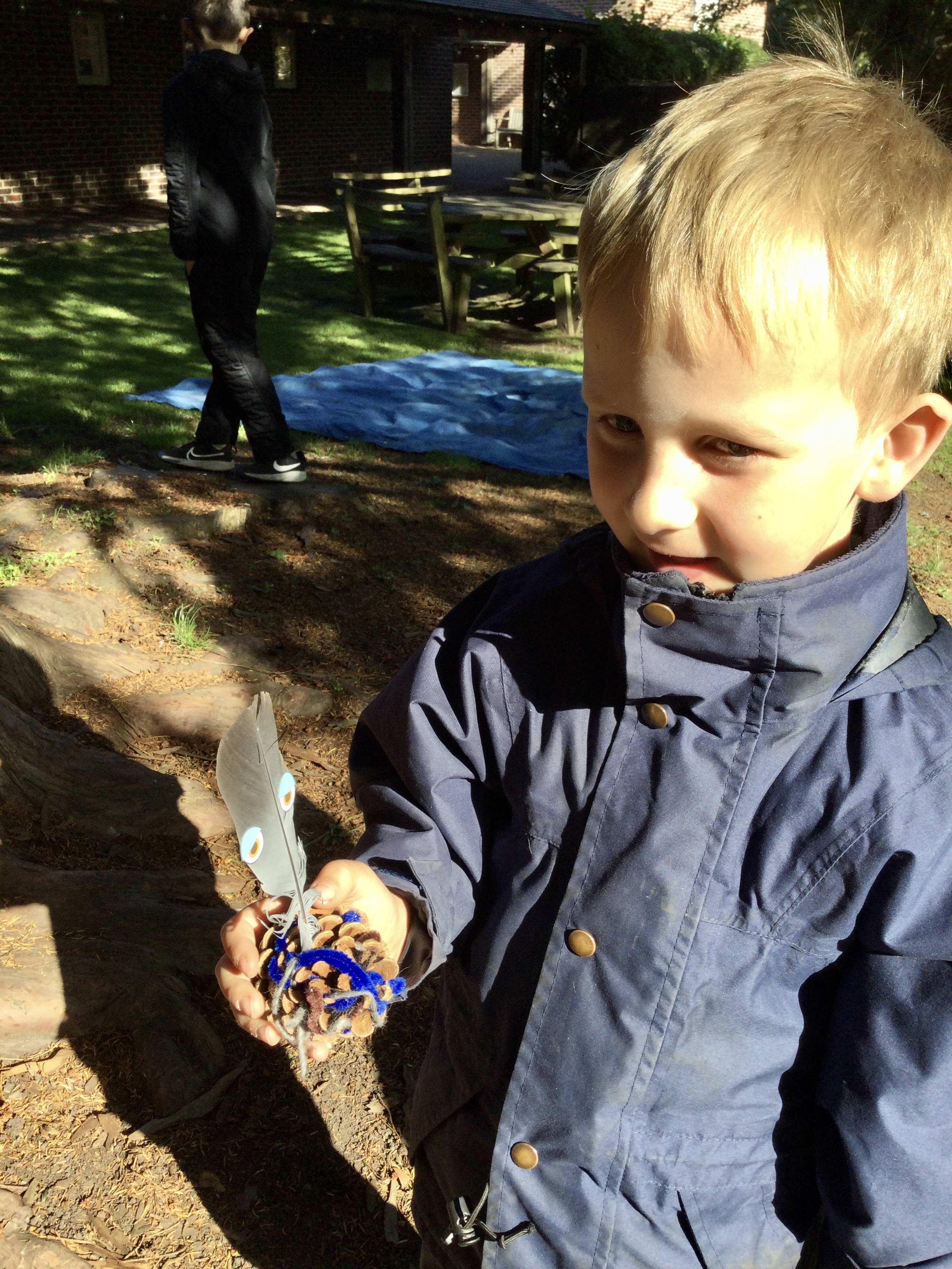In Year 1 this week, the boys learned how to turn fir cones into some wonderful flying insects with the help of leaves, bits of wool, and pipe cleaners. The fir cones seemed to spring into life once the goggly eyes were added as the final touch. The boys enjoyed exploring the site with their new insects.