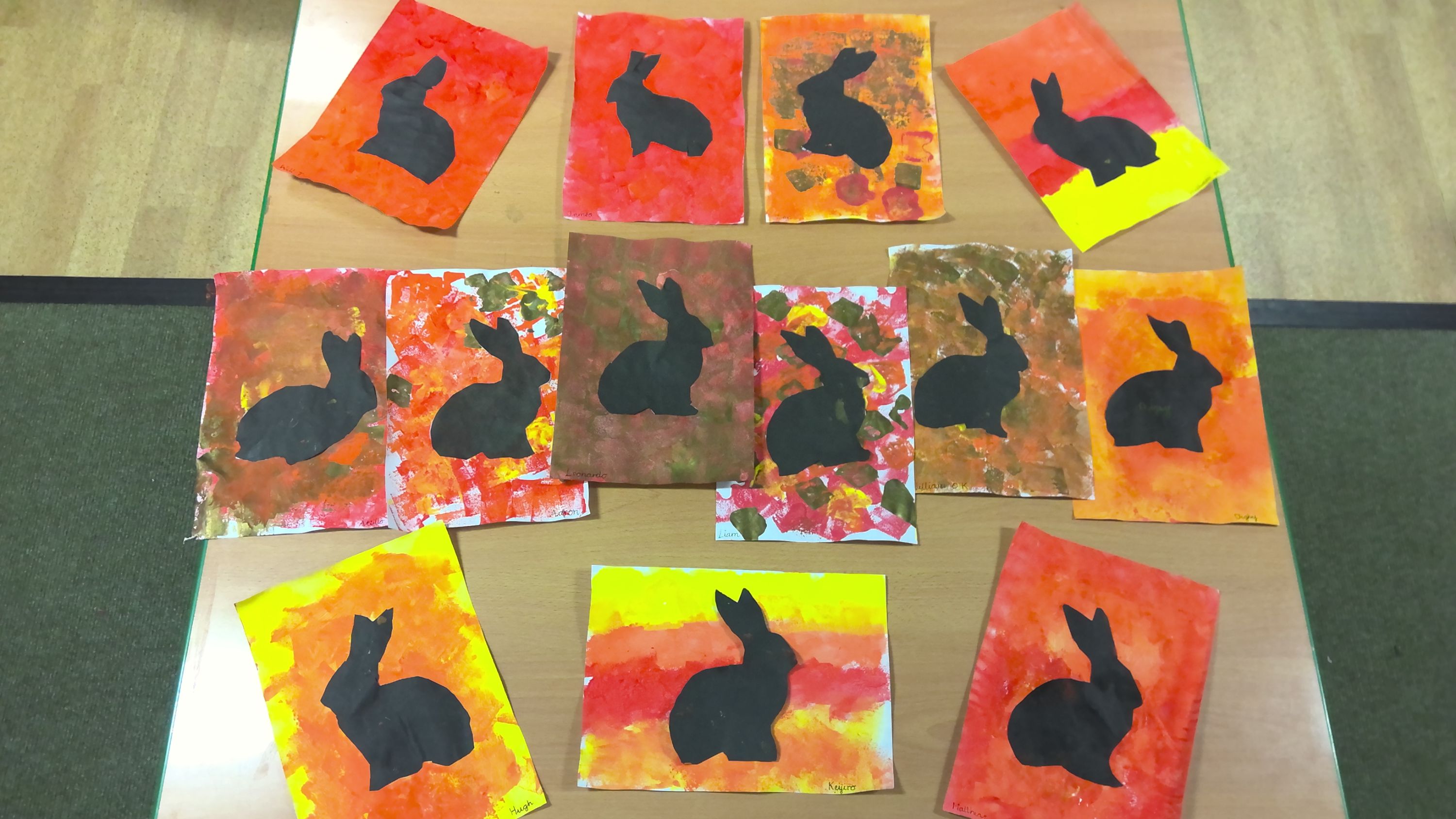 Using the rabbit and talking more about Chinese traditions, lucky colours and actions were discussed. Why do some people sweep their homes and premises at the beginning of the Chinese New Year? Which colours are seen to be lucky? Using this information, the boys learnt about silhouettes and sun sets and sponge printing. They created colourful sun set sponge pictures adding a rabbit silhouette. I think they look very affective, and have decorated our classroom beautifully for the Chinese New Year. The boys will bring these home at the end of next week so you can equally admire them.