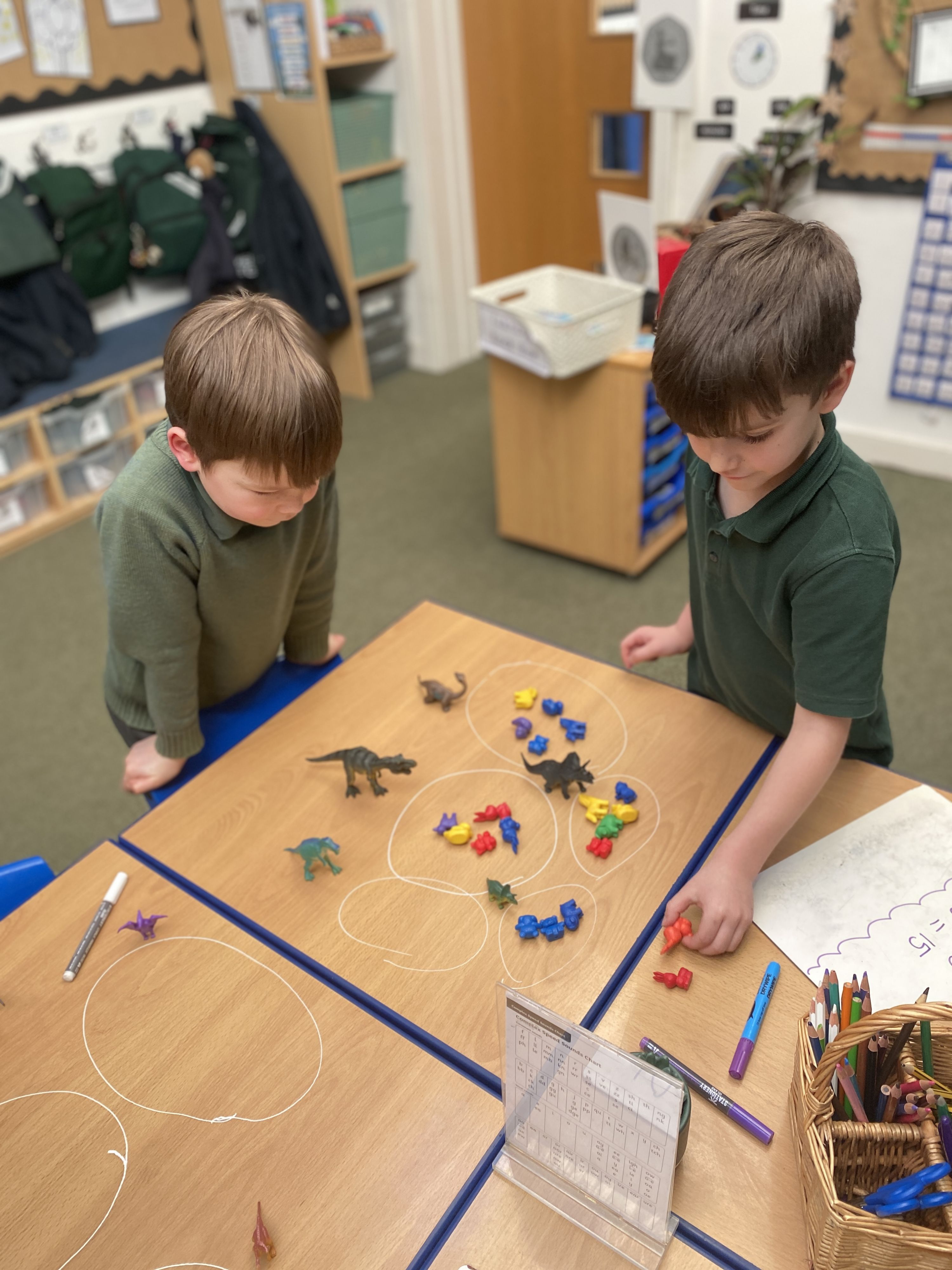 This week, the boys began their new unit on multiplication and division. We explored the idea of making equal groups, and the boys worked in pairs using counters and everyday classroom objects to build and check their own sets. They enjoyed the collaborative, hands‑on challenge of ensuring each group was truly equal, and many were able to explain their thinking clearly to their partners. This practical approach helps the boys develop a secure understanding of how multiplication represents 'lots of' a number and how division focuses on sharing into fair groups.