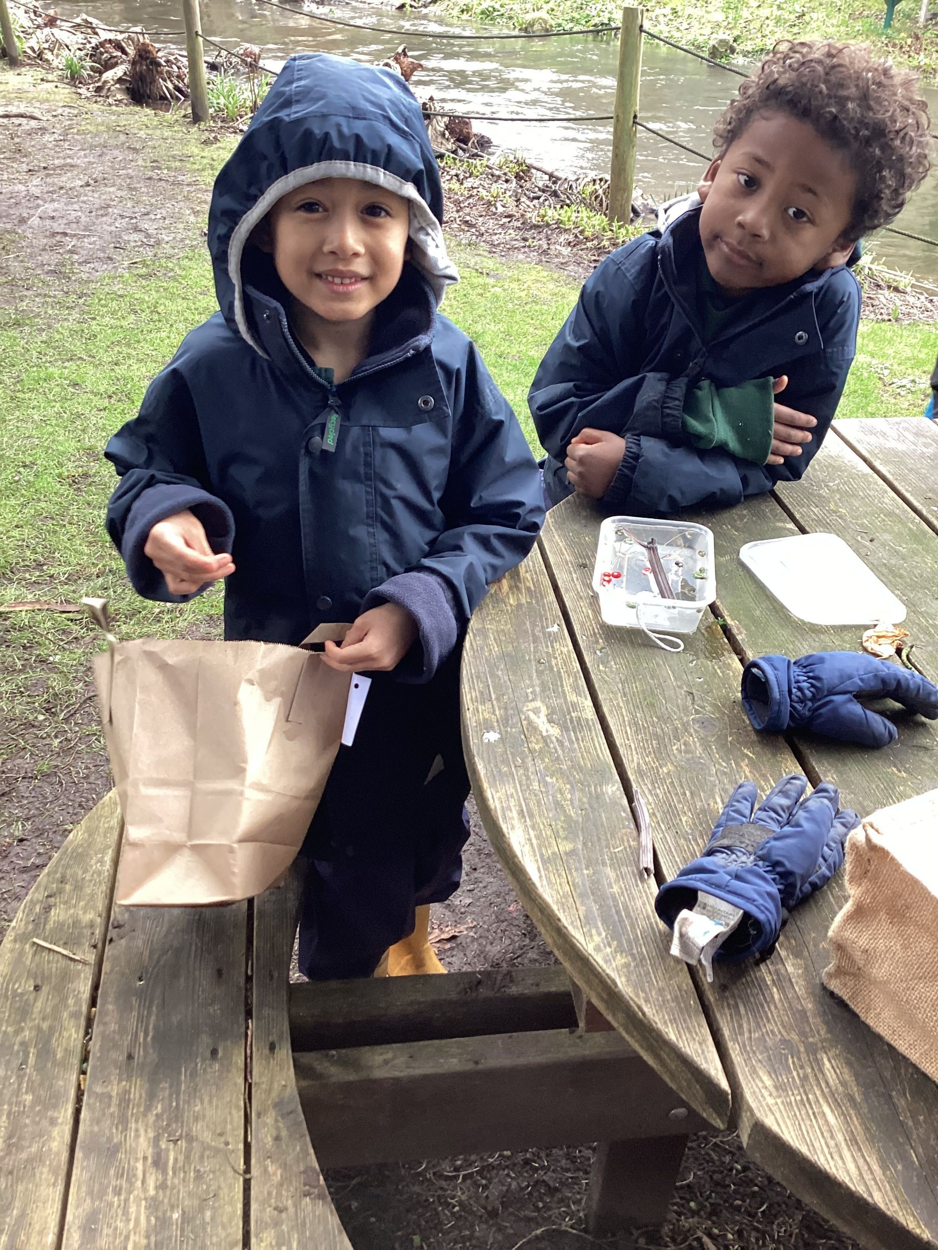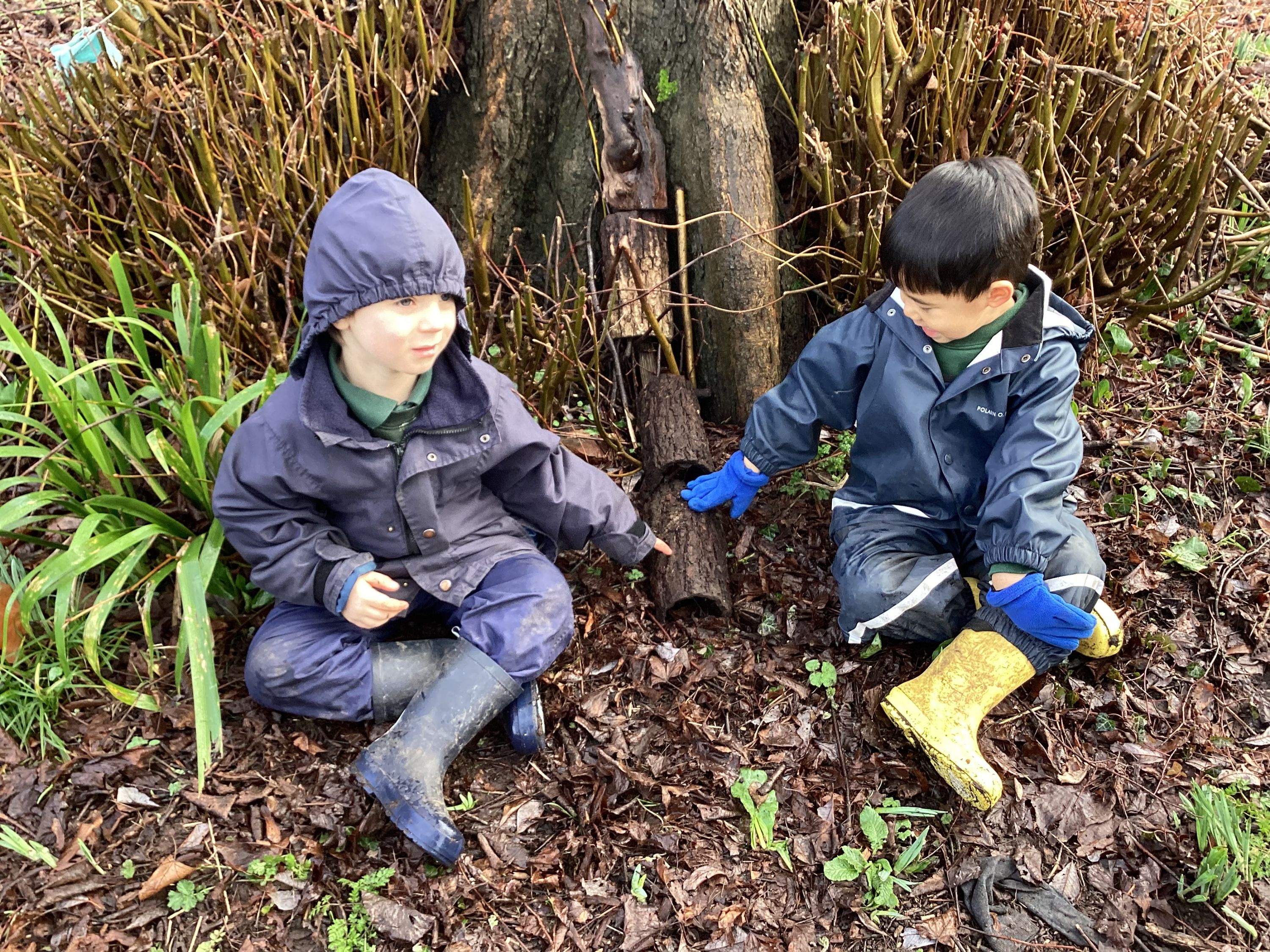 This week at Forest School, Year R spent time thinking about the challenges faced during the colder months by our small invertebrates. We chatted about what makes a suitable place for these small animals to survive the long winter months. Each group was given a small plastic invertebrate and asked if they could make a suitable home for their little creature – one that was safe, warm and dry. At the end of the lesson, we had fun testing the homes to see how waterproof they actually were and I am pleased to announce all the insects stayed dry!