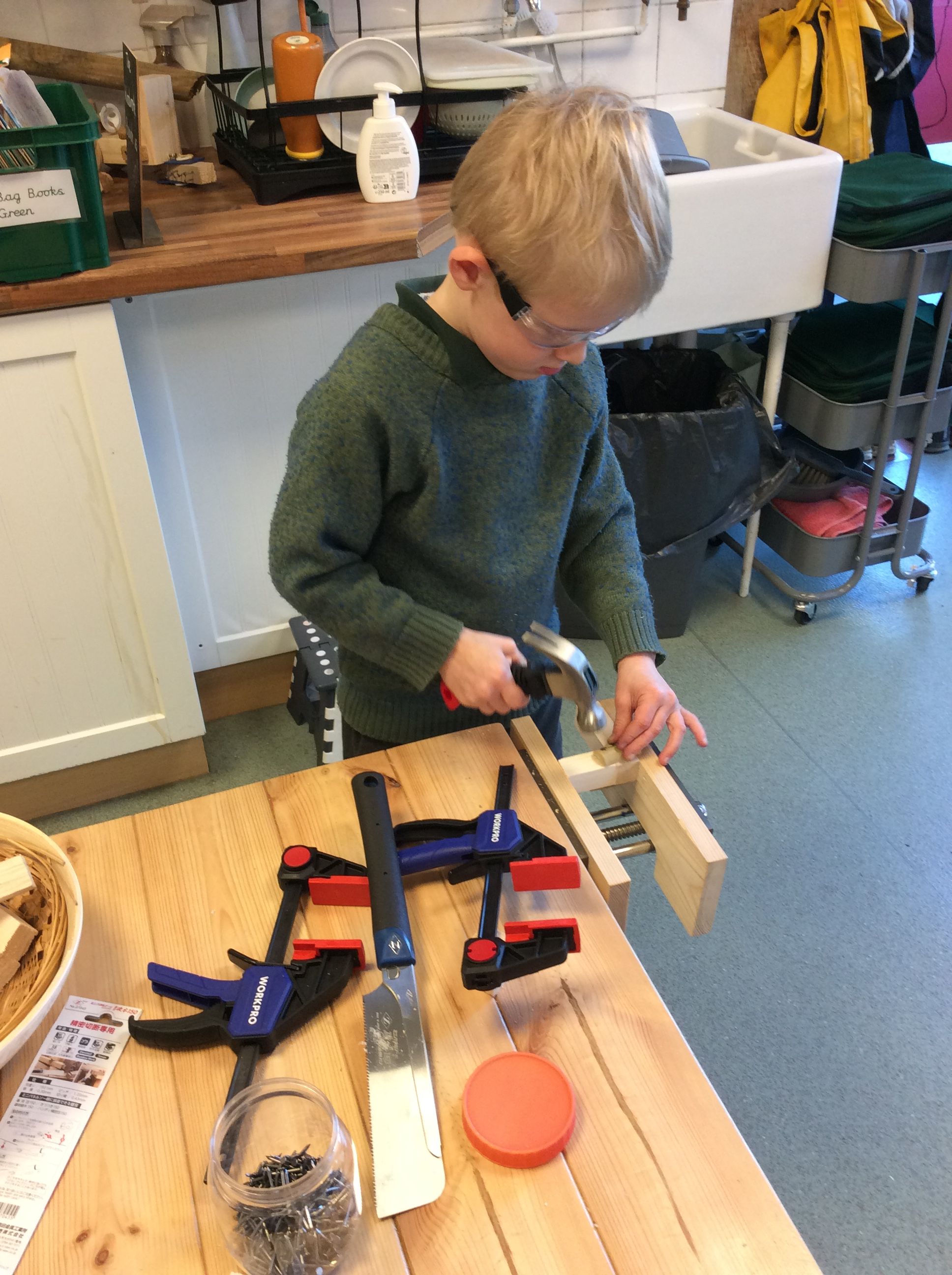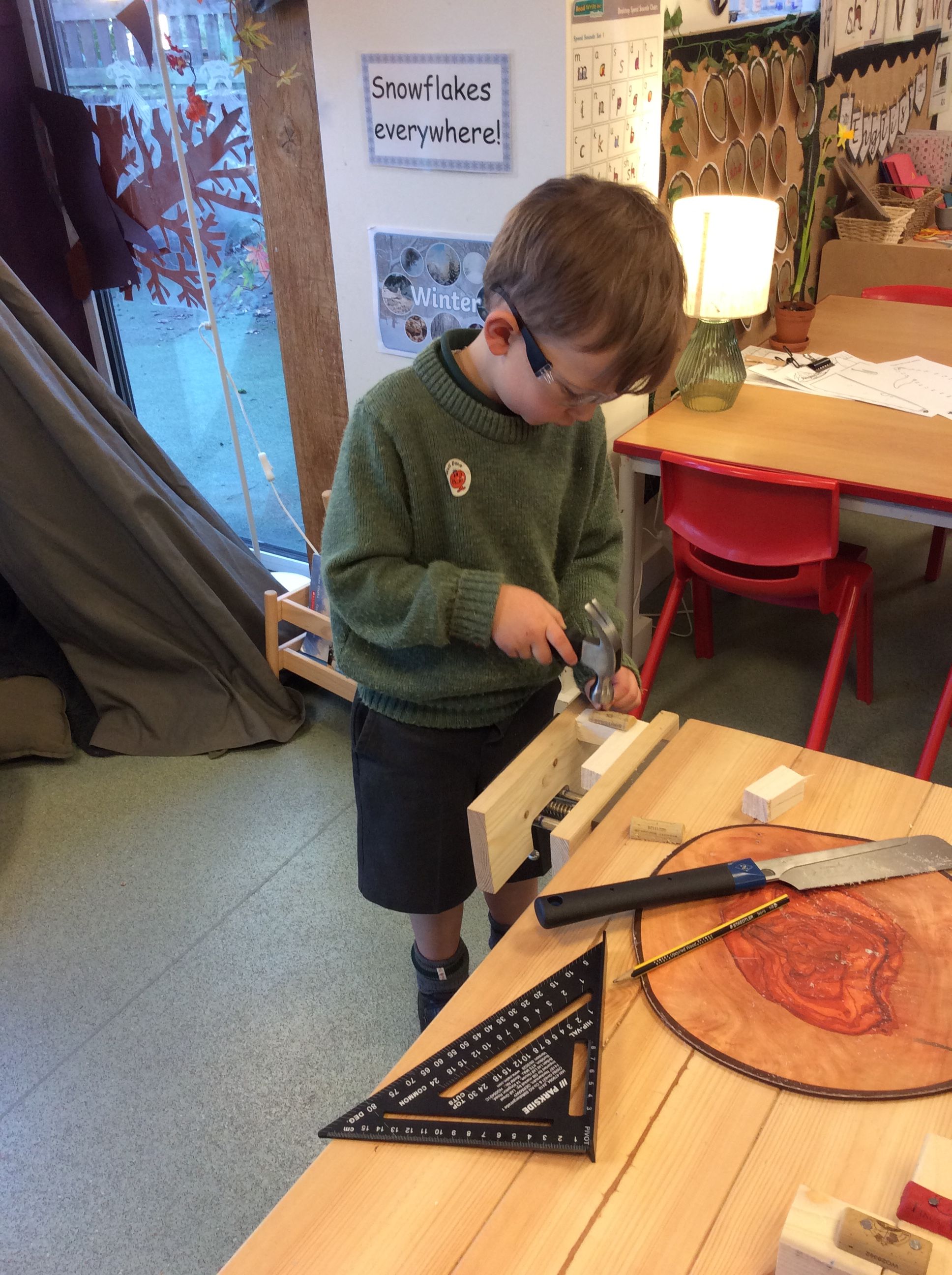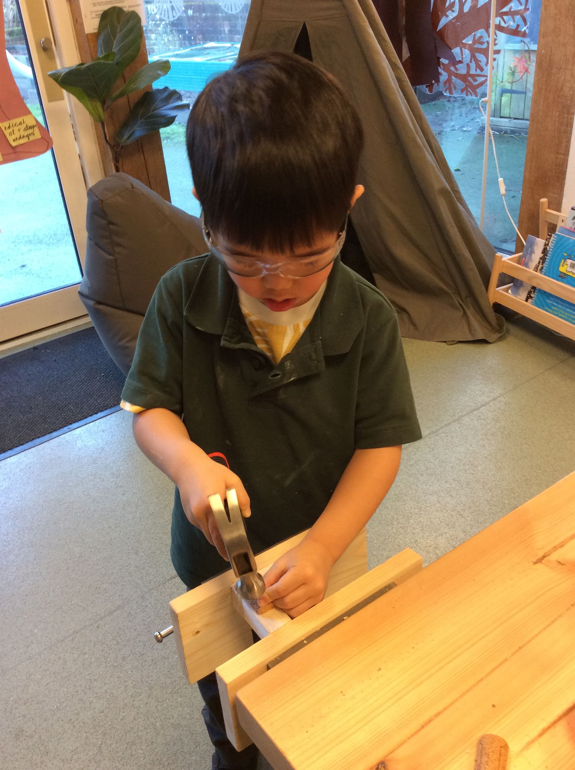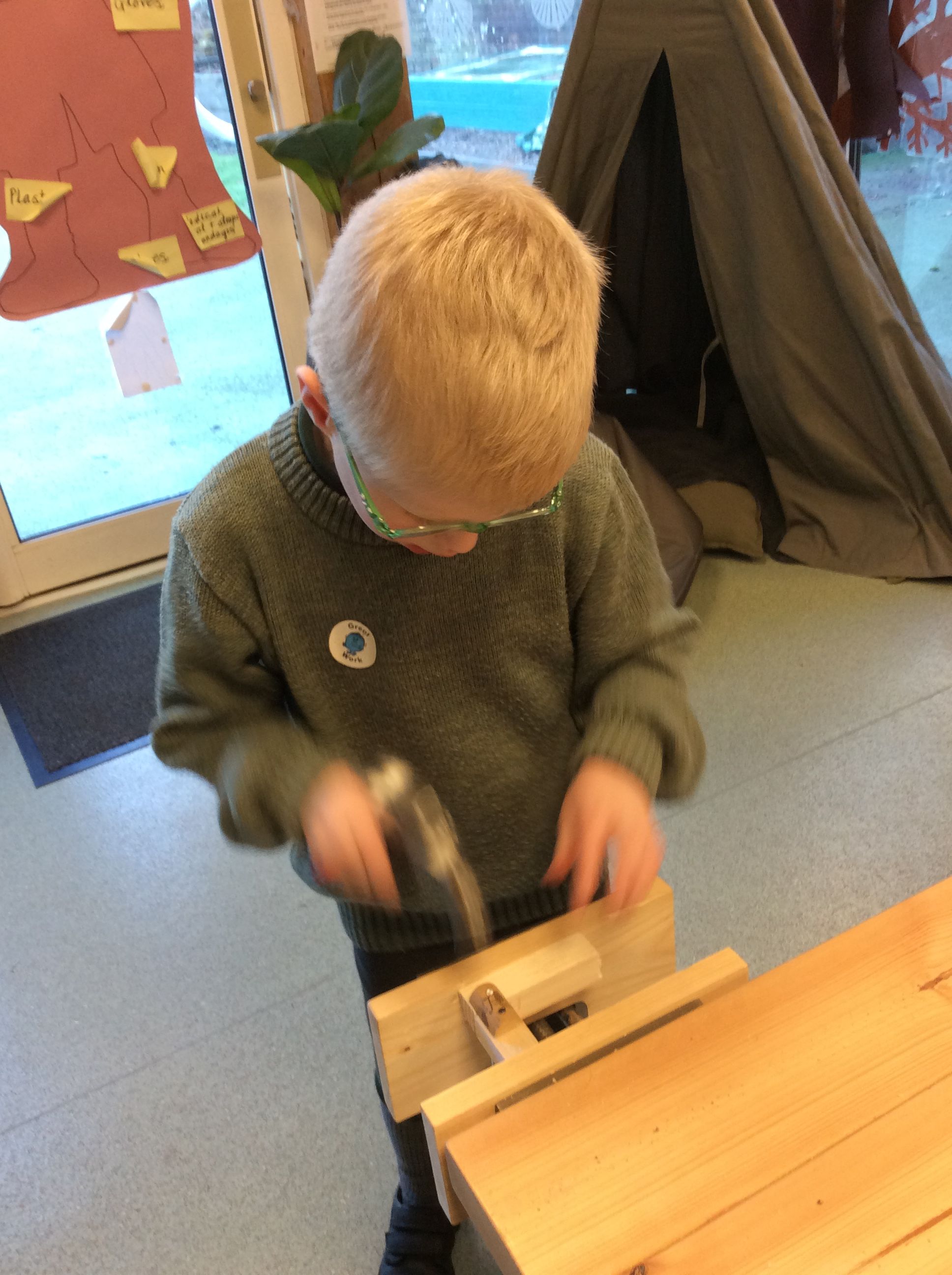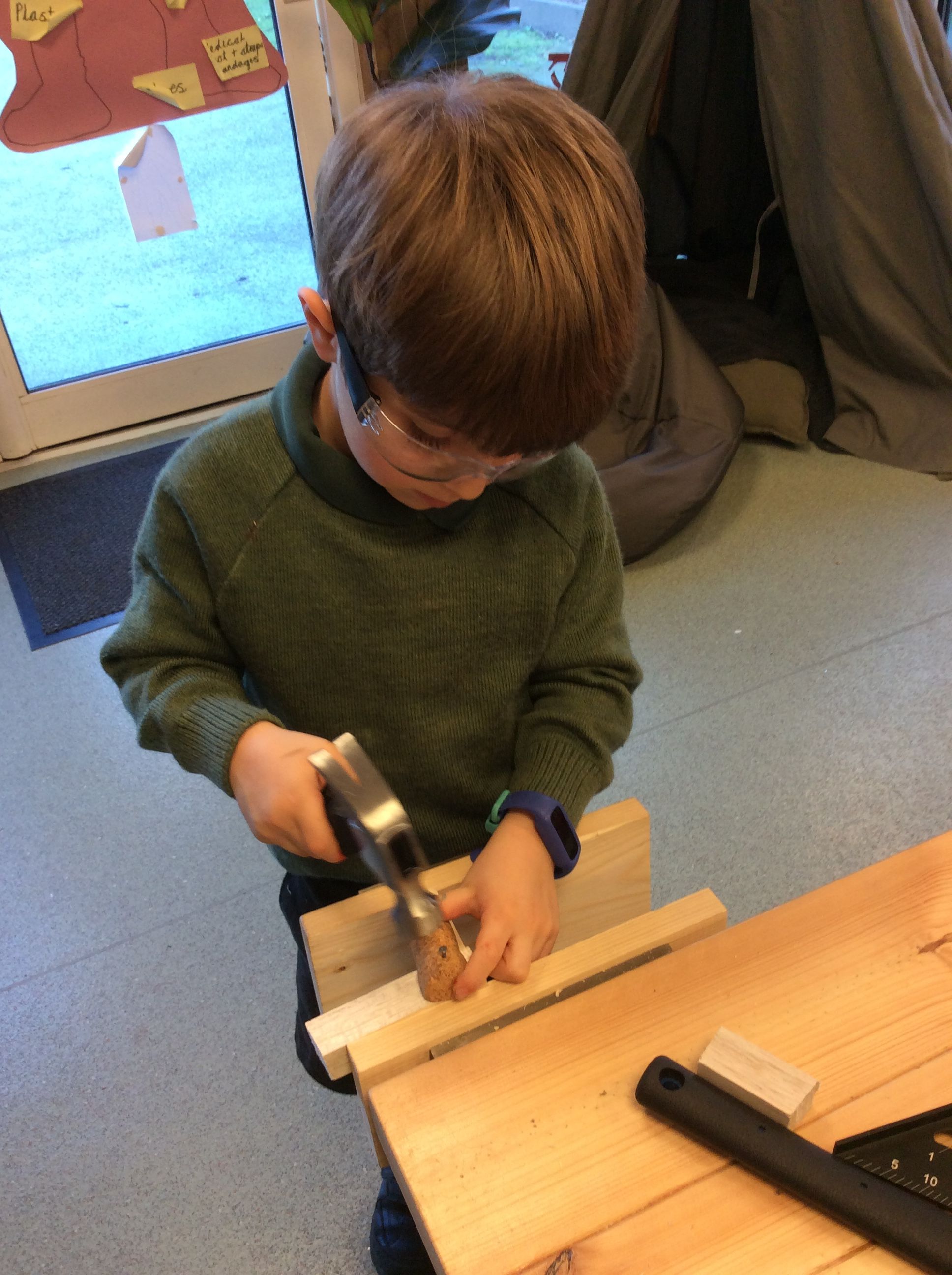 Aside from weighing, but also using some maths skills, the boys began their next practical learning activity at our class woodwork bench. They were very excited to have another go and, this time, to learn how to brace two pieces of wood together using cork, hammers, and nails. They listened carefully to safety instructions, watched a demonstration and demonstrated excellent craftsmanship, showing real enthusiasm for using real tools. It was fantastic to see the boys’ perseverance, focus, and pride in their finished work. Next time we will explore hand drills!