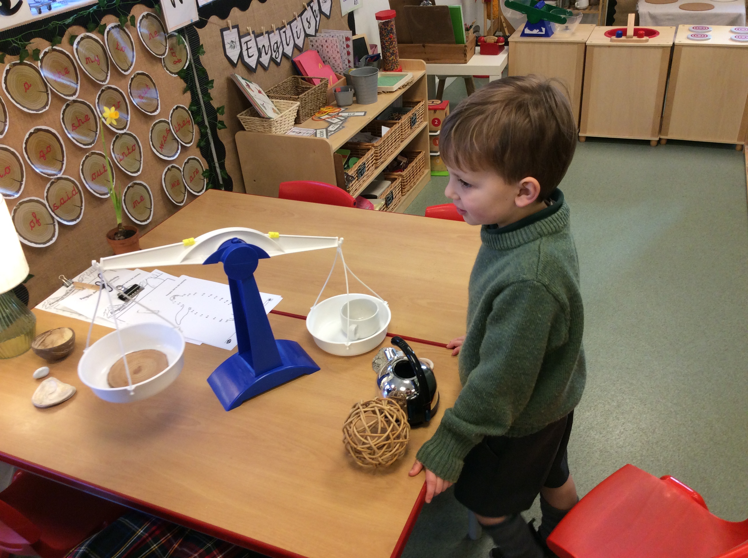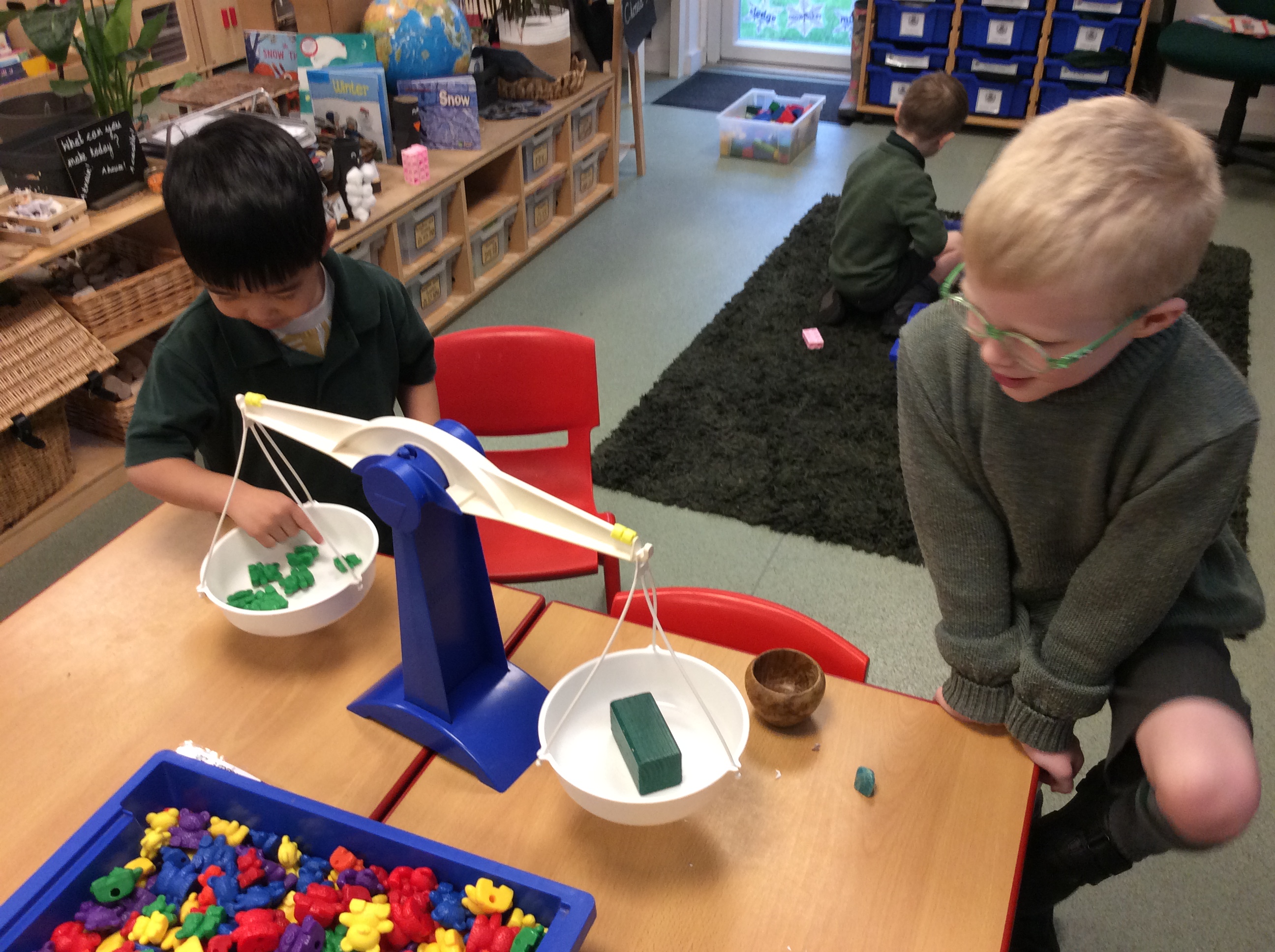 This week in Reception, we have been revisiting and building on our previous learning about weight and measuring. The boys enjoyed exploring a range of objects using balance scales to compare how heavy or light different items are.