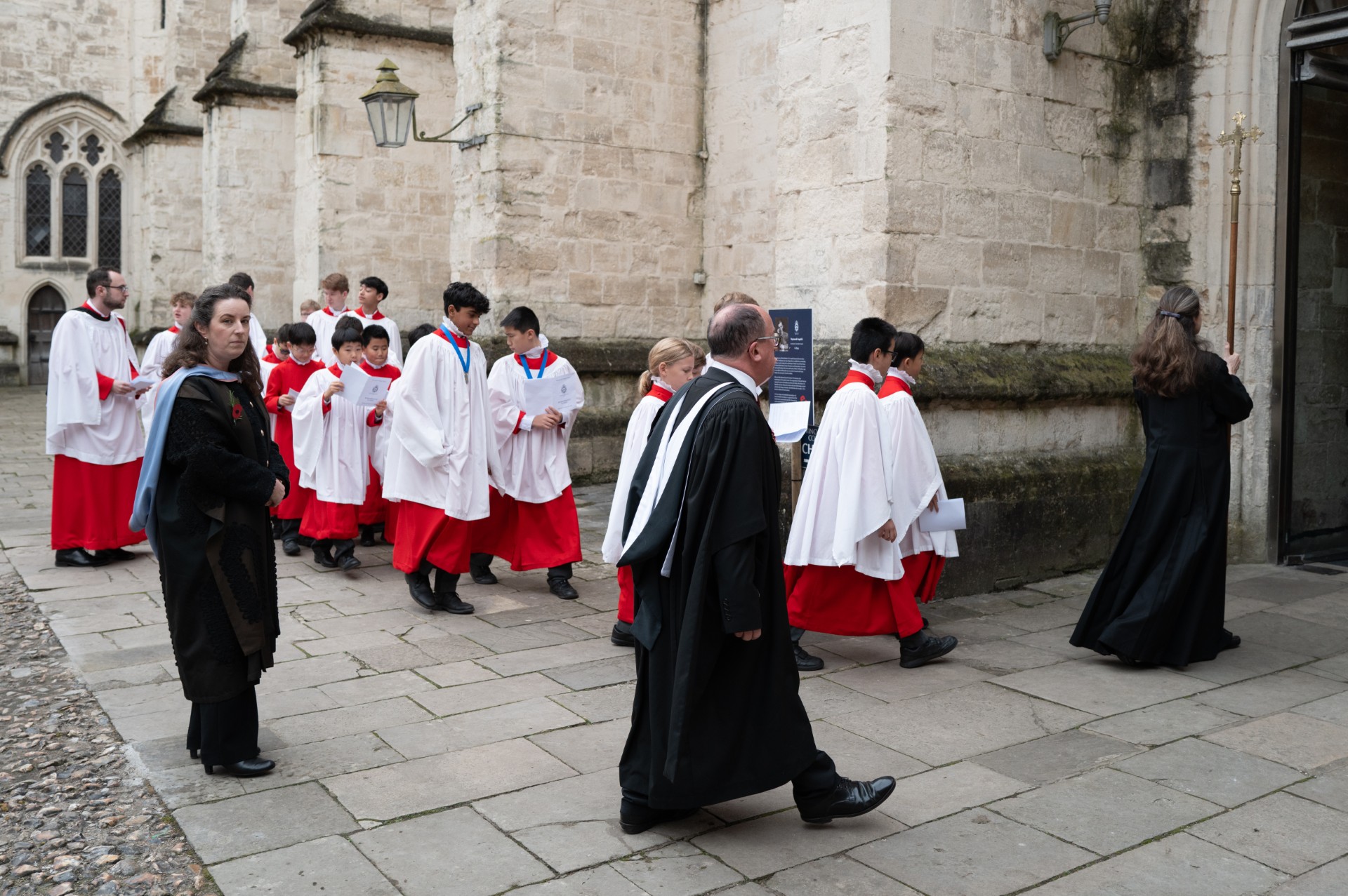 The Quiristers delivered an exceptional performance of the anthem "O Pray for the Peace of Jerusalem" (Howells), demonstrating their usual professionalism and focus. Their a cappella harmonies were particularly moving, especially the refrain, "Pray for the peace of Jerusalem," providing a solemn yet comforting lead-in to the Roll of Honour ceremony. The congregation remained silent as the standard-bearers turned the final pages of the roll.