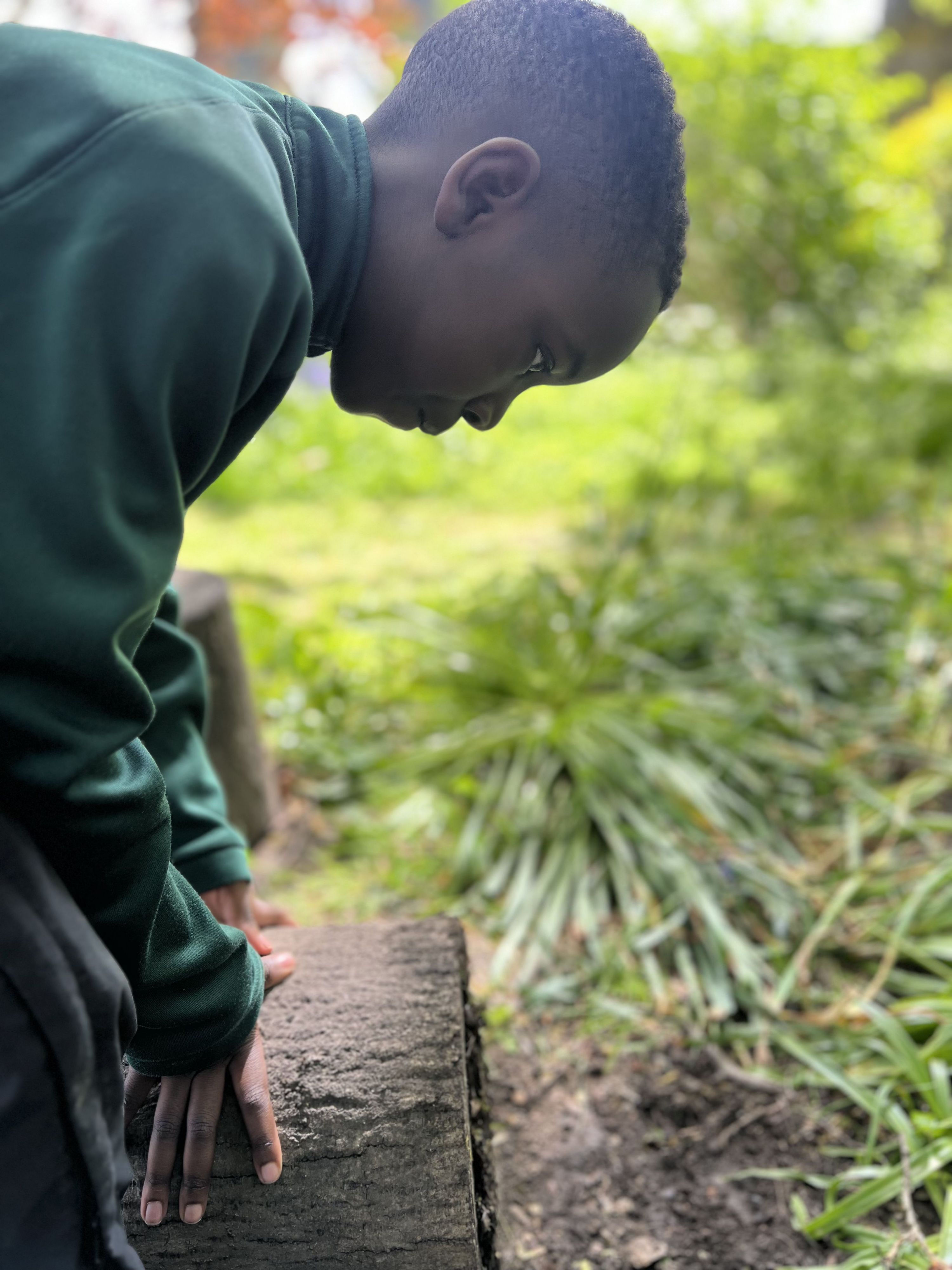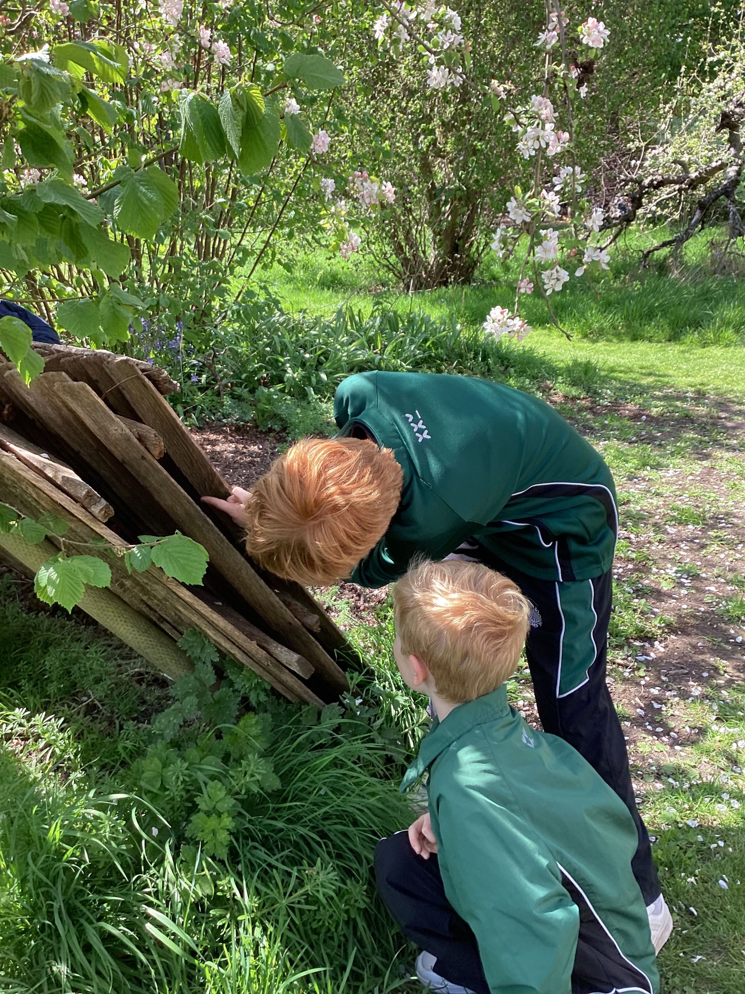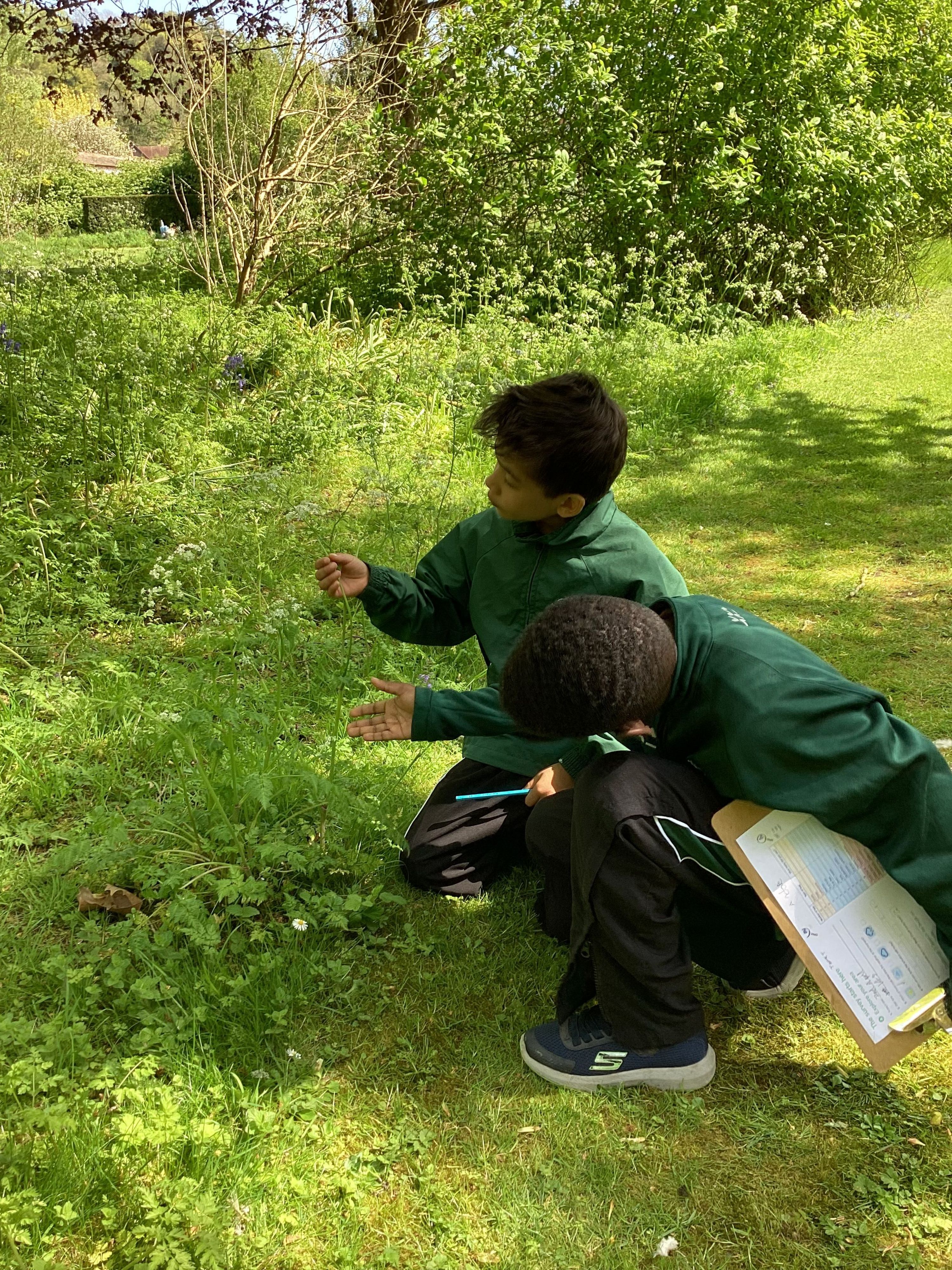 Learning about our site and the small invertebrates that live there is very important when understanding a microhabitat and this Wednesday it was Earth Day. In small groups, the boys carried out a survey looking at what minibeasts live on soft ground surfaces, hard man-made surfaces, and on plants. They carefully counted the number of different invertebrates they found. The data was kept for future reference. At the end of the session, we connected with the Earth, by placing a bare foot onto the ground and describing how it felt!