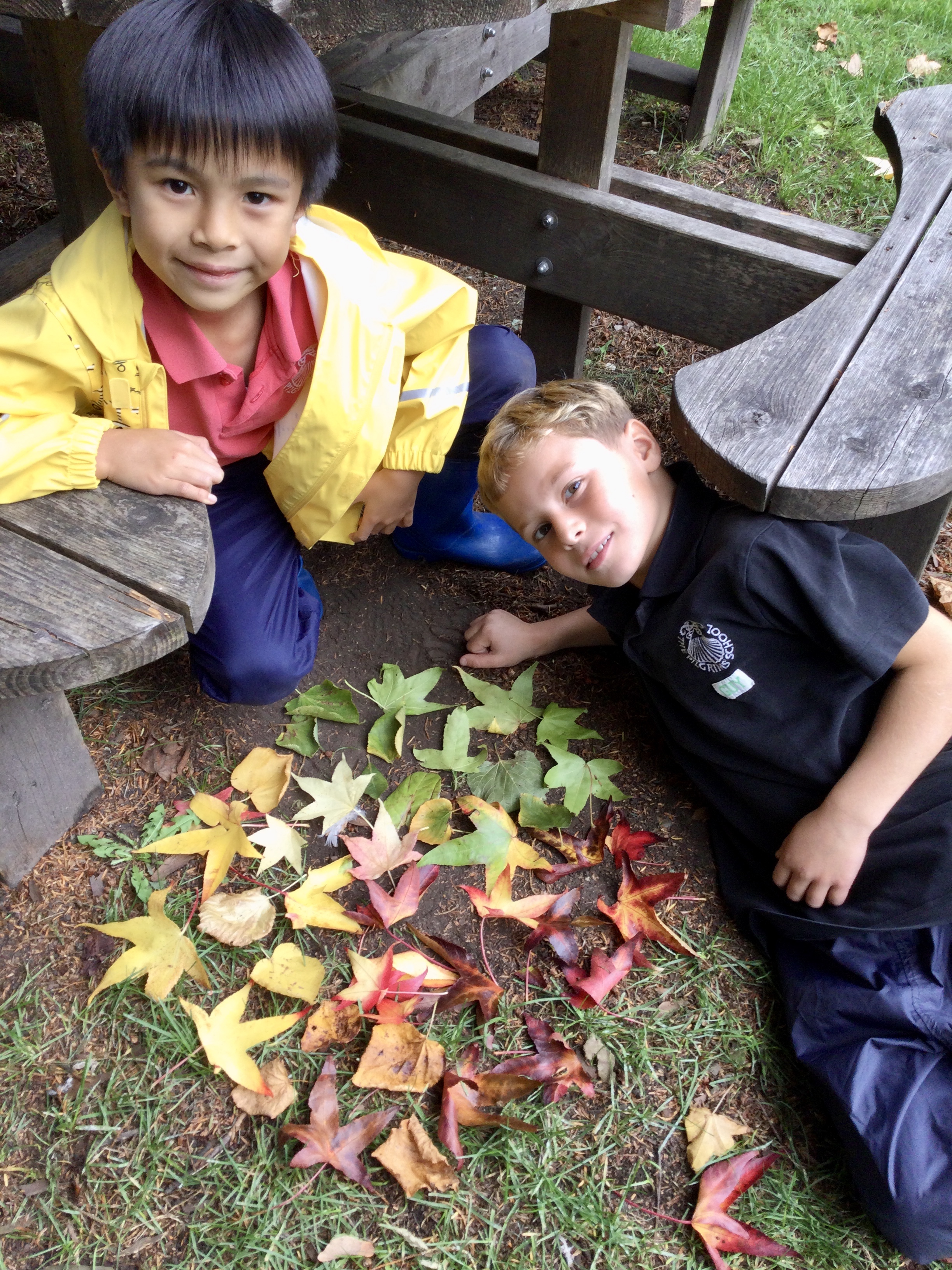 This week in Forest School, we chatted about the different stages of colour a leaf goes through during autumn.