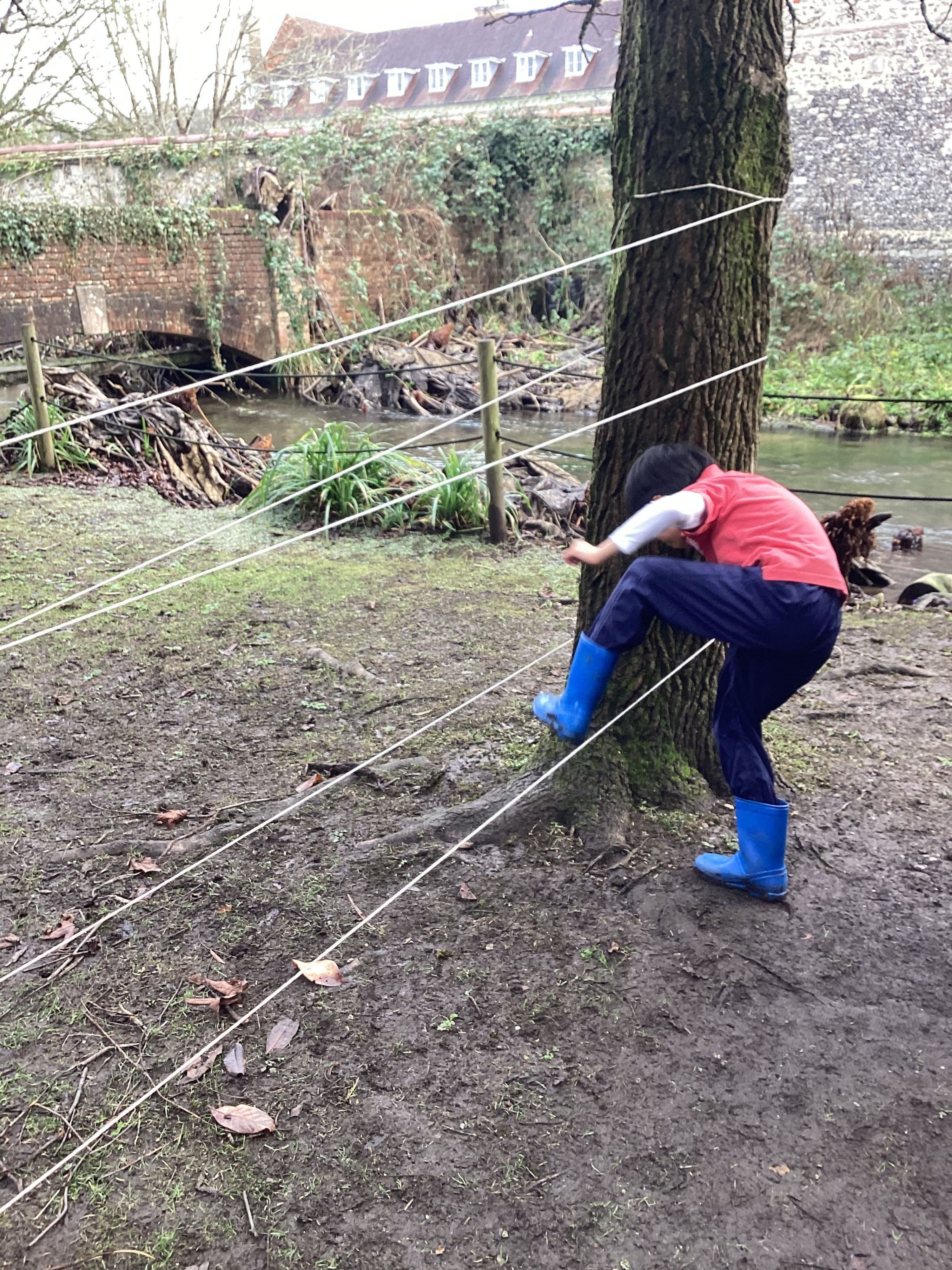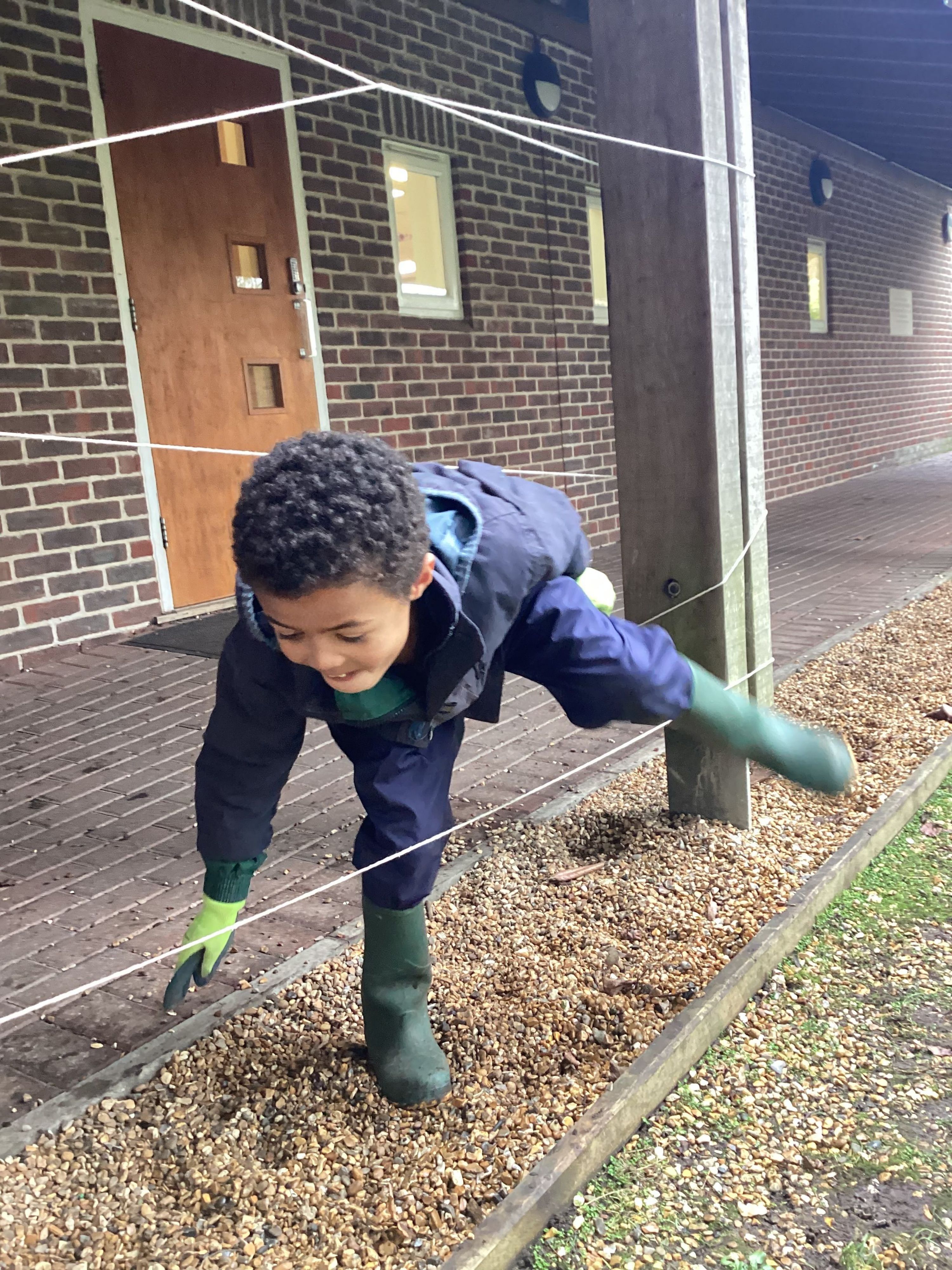 Working in teams, they created a huge spider’s web and were then asked to negotiate their way through the web without touching any part of it. Of course, the web became more complicated each time, and some boys became prey for the spider!