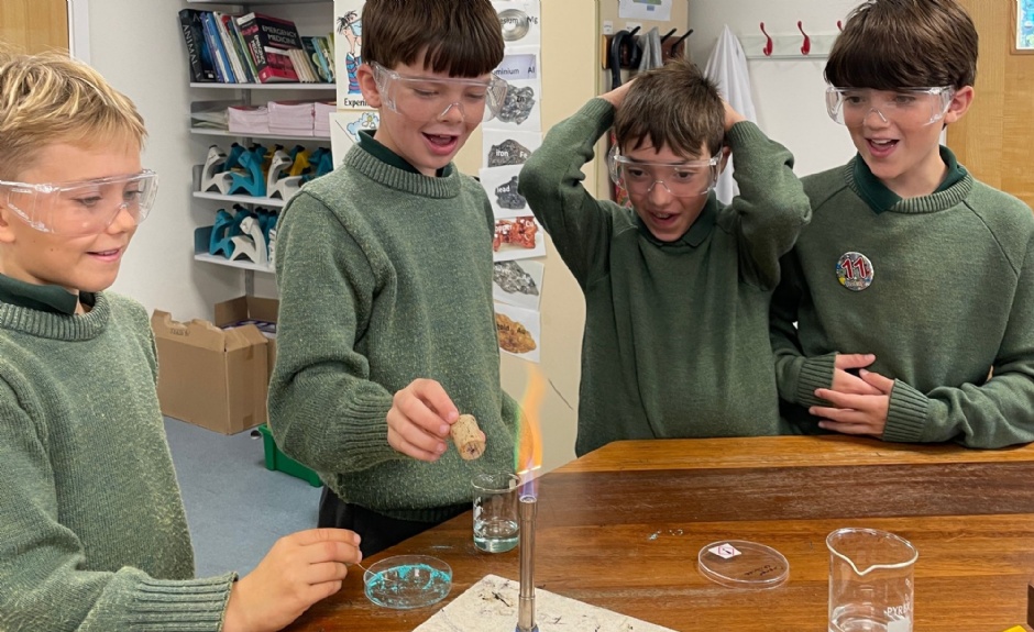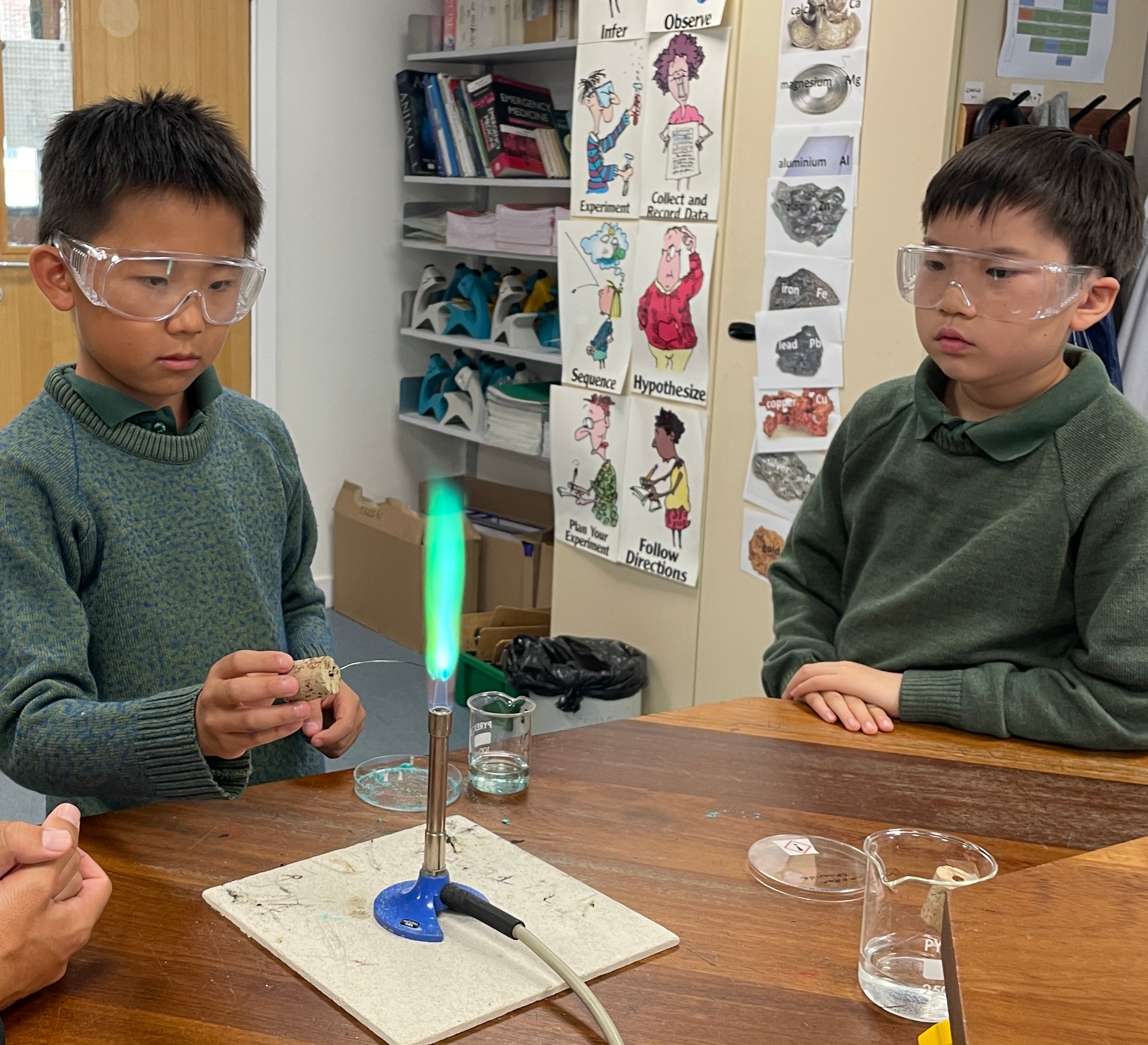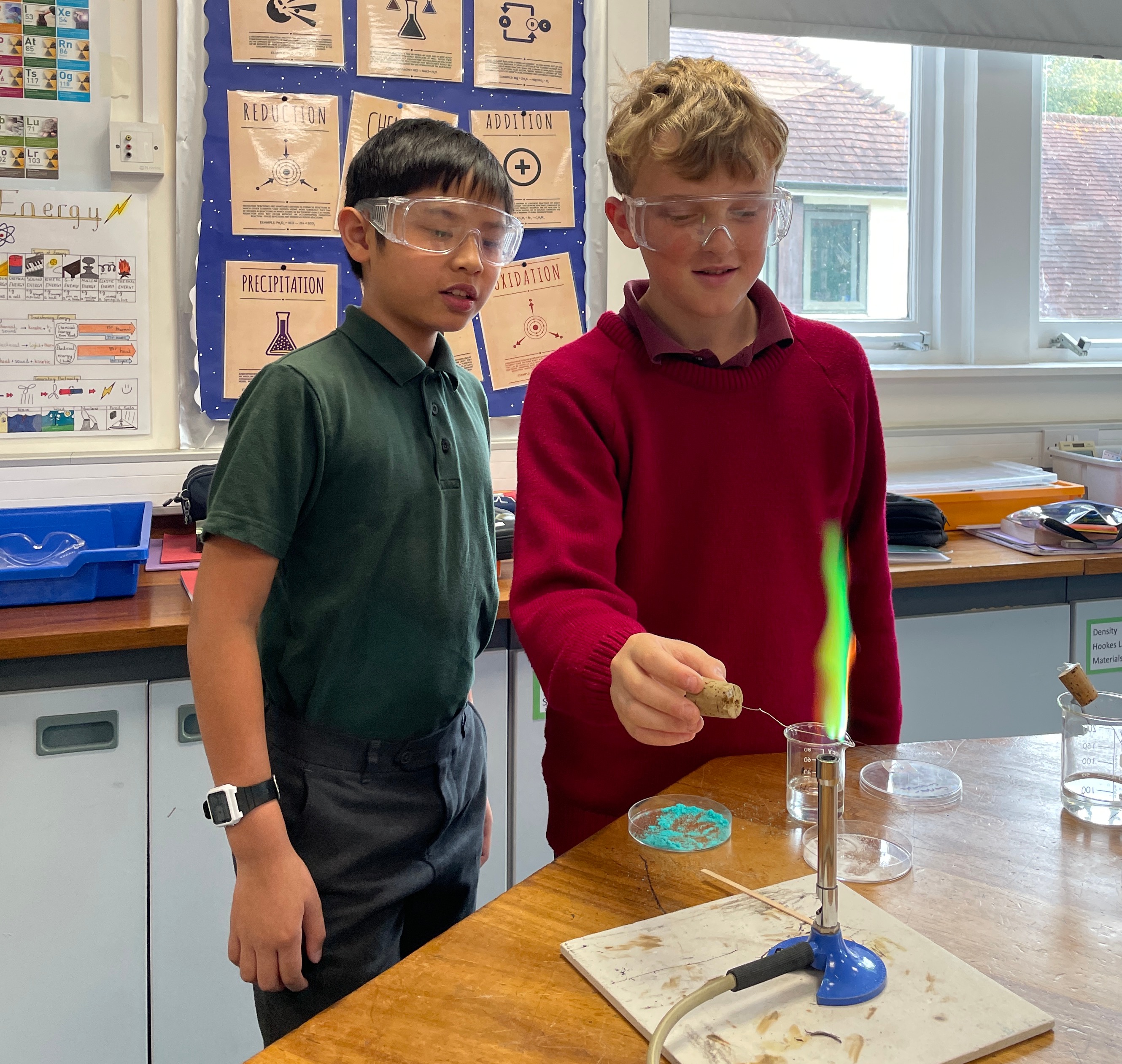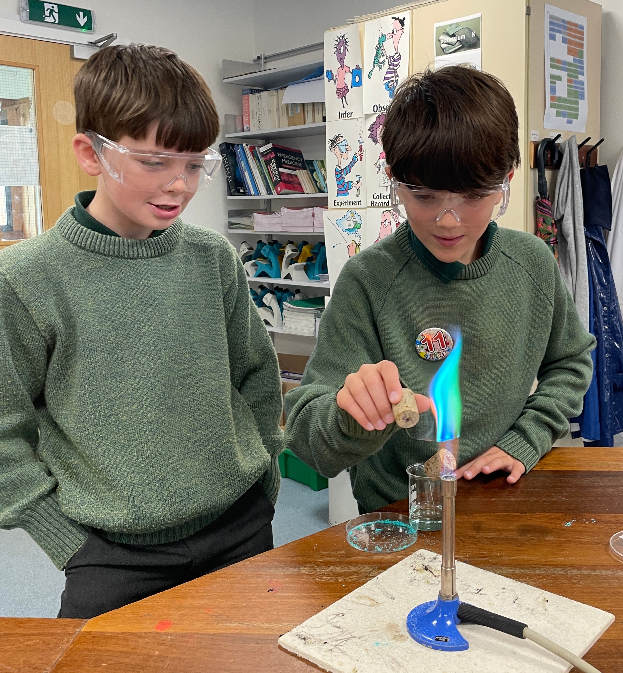 Ask your boys to see if they've remembered which metal ions burn with which colours!