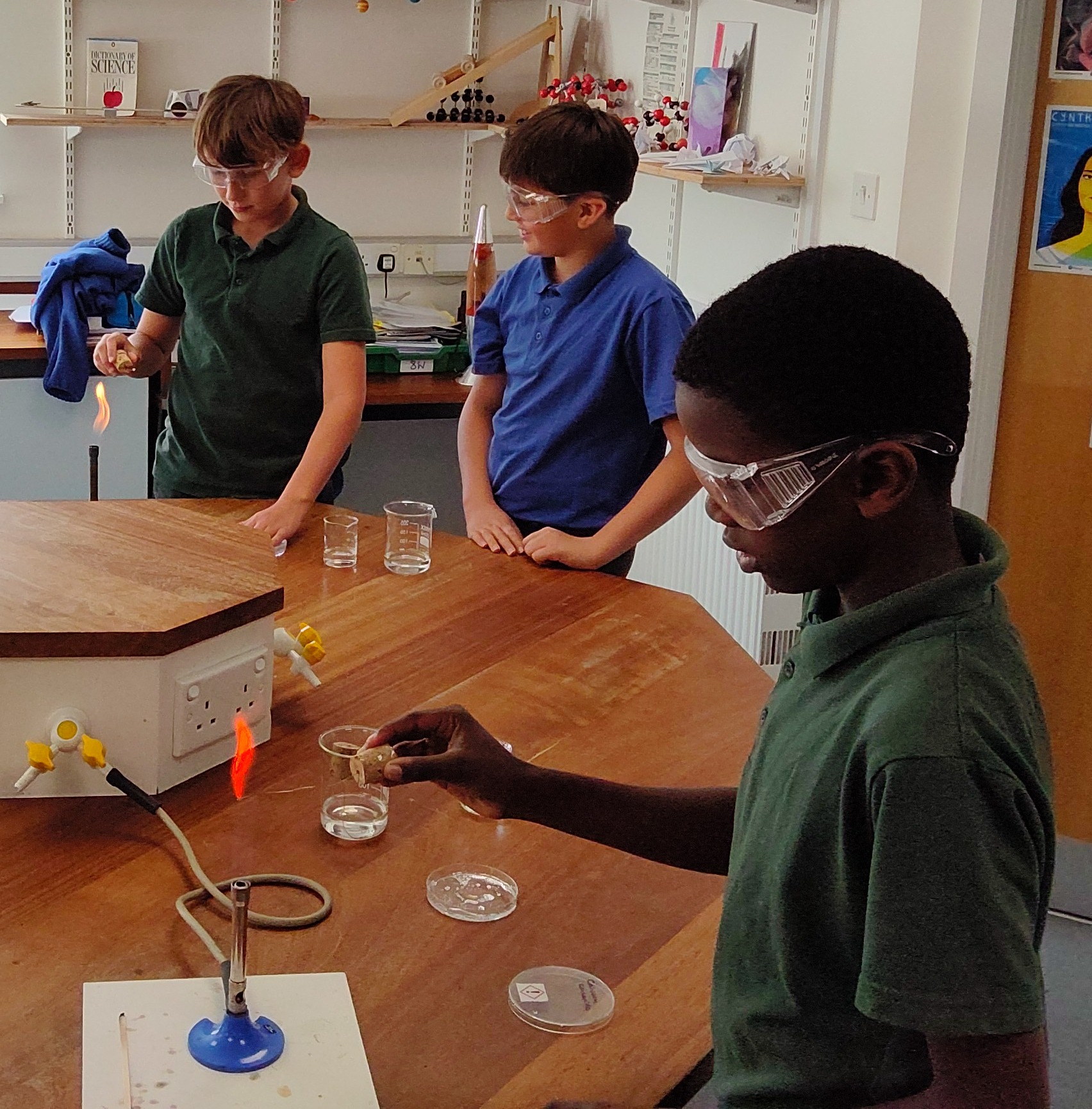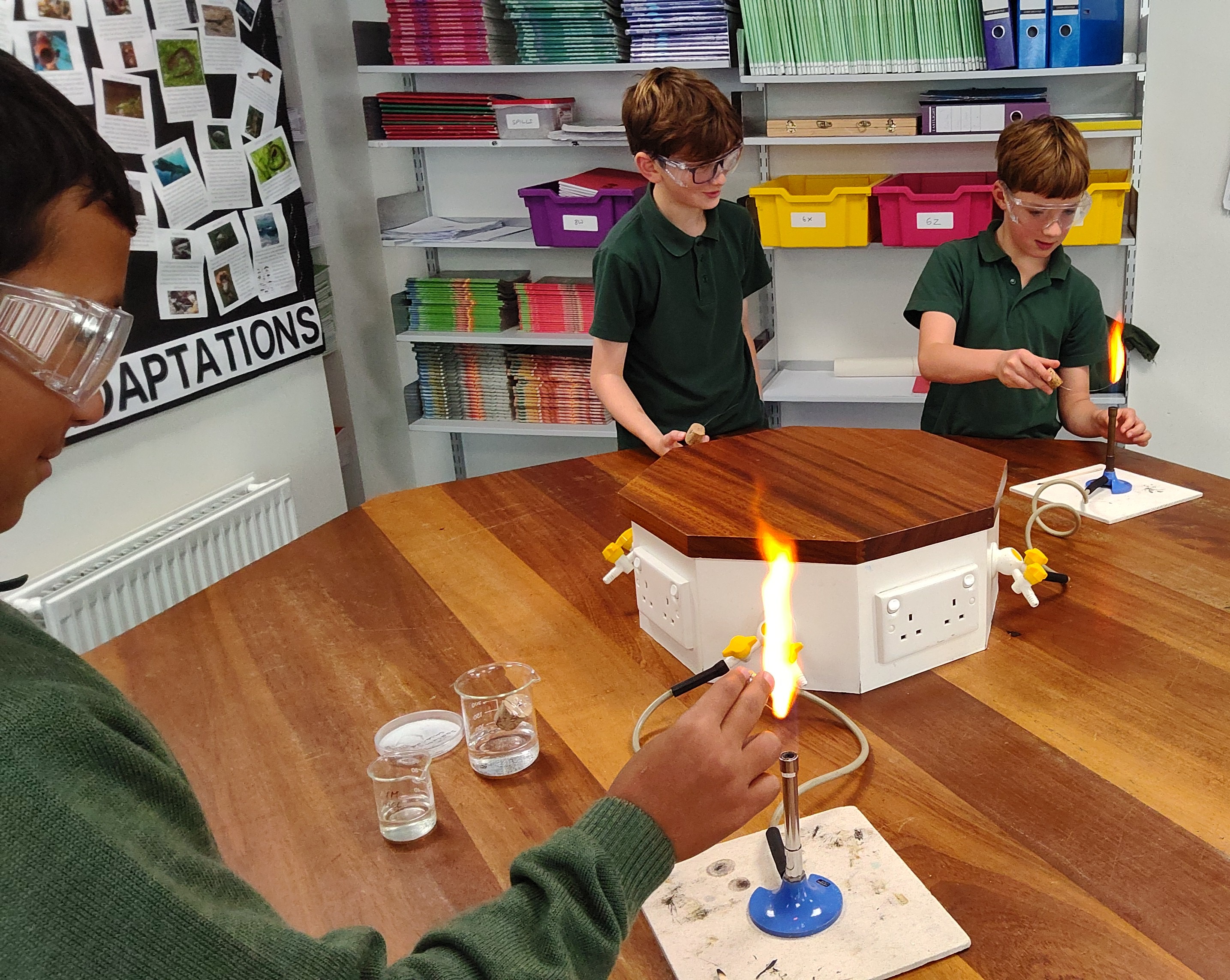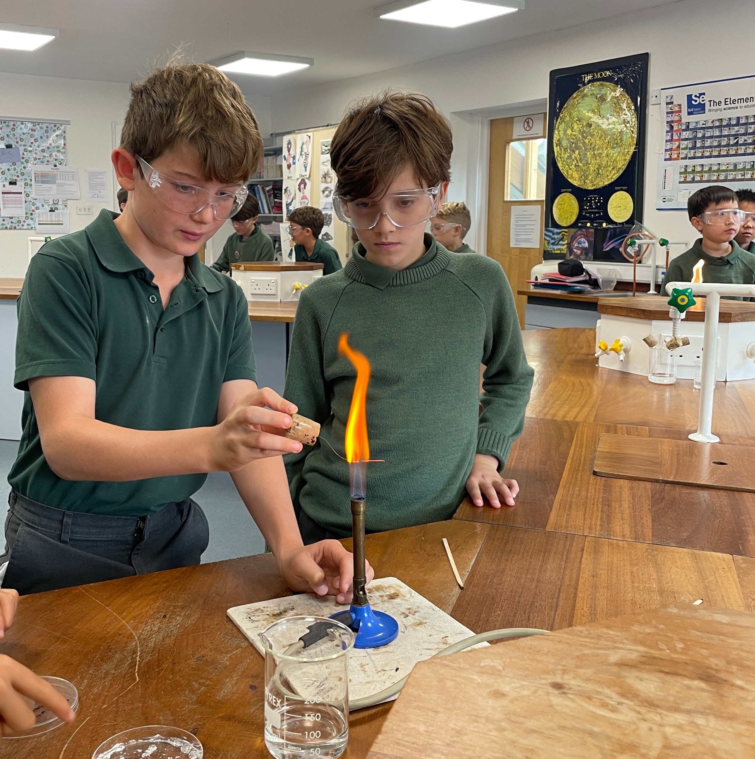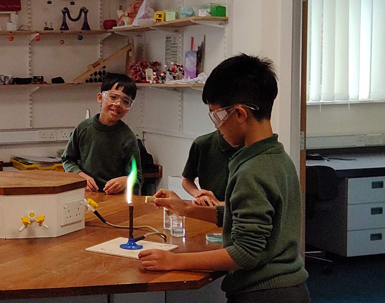 Ask your boys to see if they've remembered which metal ions burn with which colours!