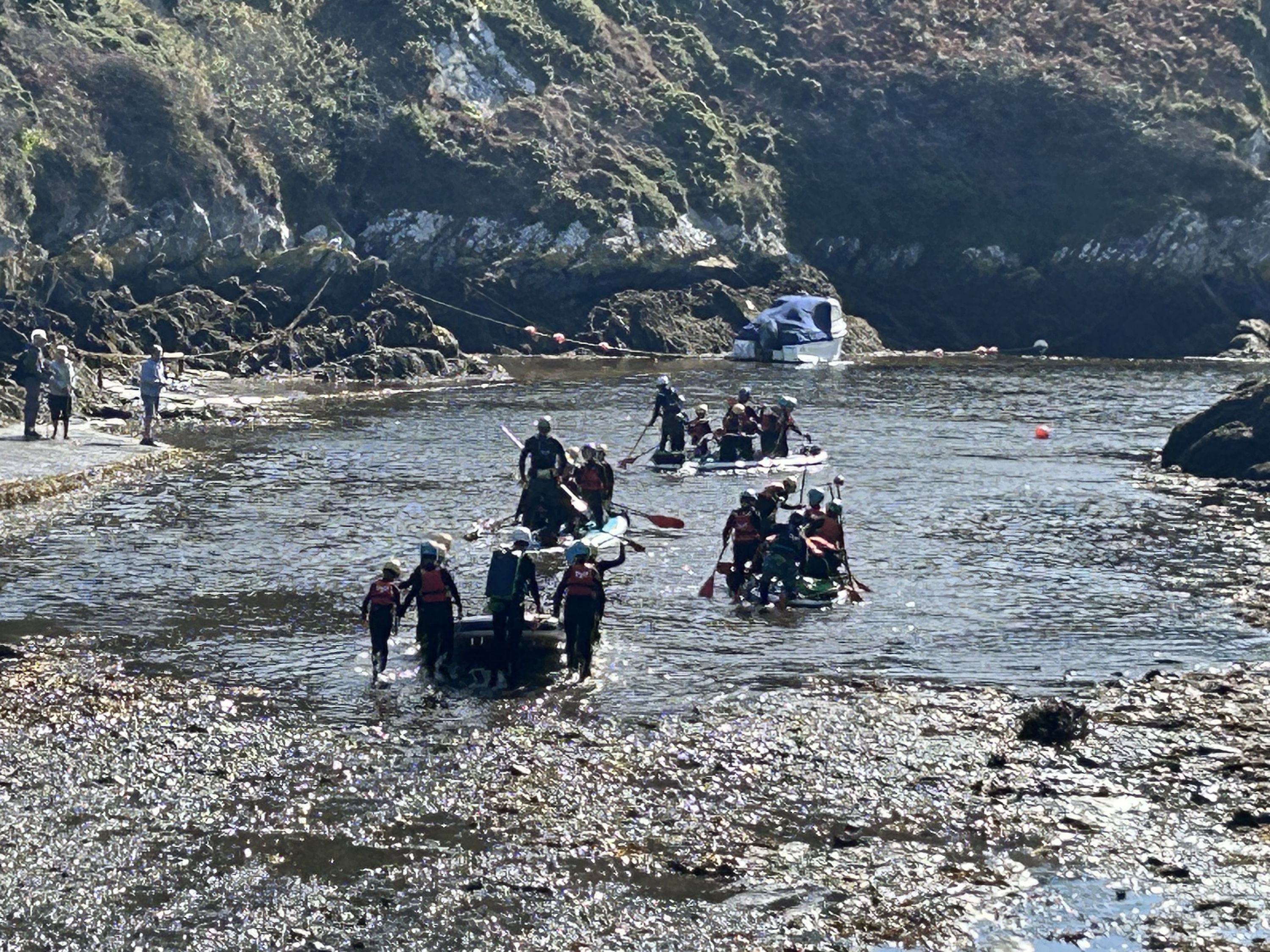 And, by the next day, Thursday, it was yet another fantastic day. The weather has spoiled us, once again, and we are so fortunate to have glorious sunshine and little wind... ideal for the day's kayaking and coasteering. The boys have been terrific. In their different groups, they boarded the kayaks on Thursday morning back at the idyllic little harbour of Porthclais. Paddling out of the harbour mouth and around the nearby coastline, the boys tackled kayaking through narrow channels and were learning how to manage the swell at the sea's edge.